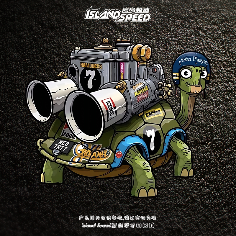 涡轮增压乌龟汽车贴纸卡通机械动物创意设计车身侧面装 饰贴