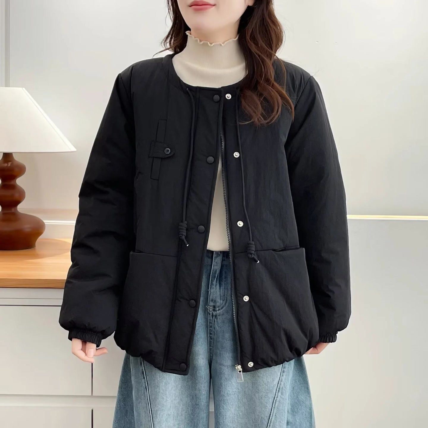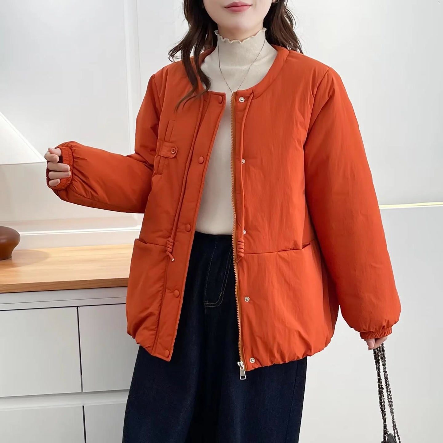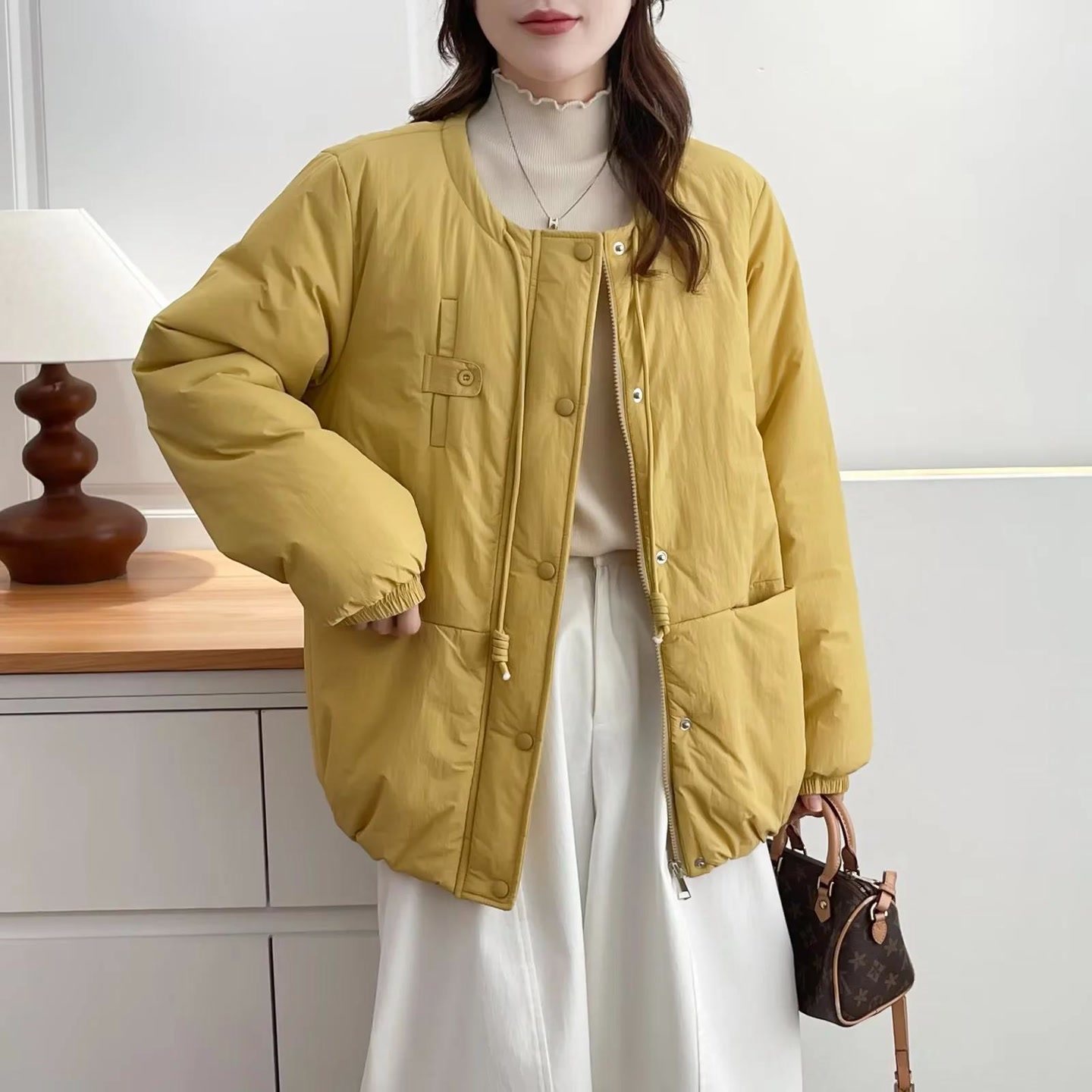 300斤特大码 韩系简约百搭棉服外套女胖mm蓝色加厚保暖面包服上衣