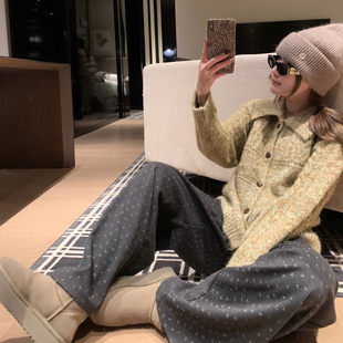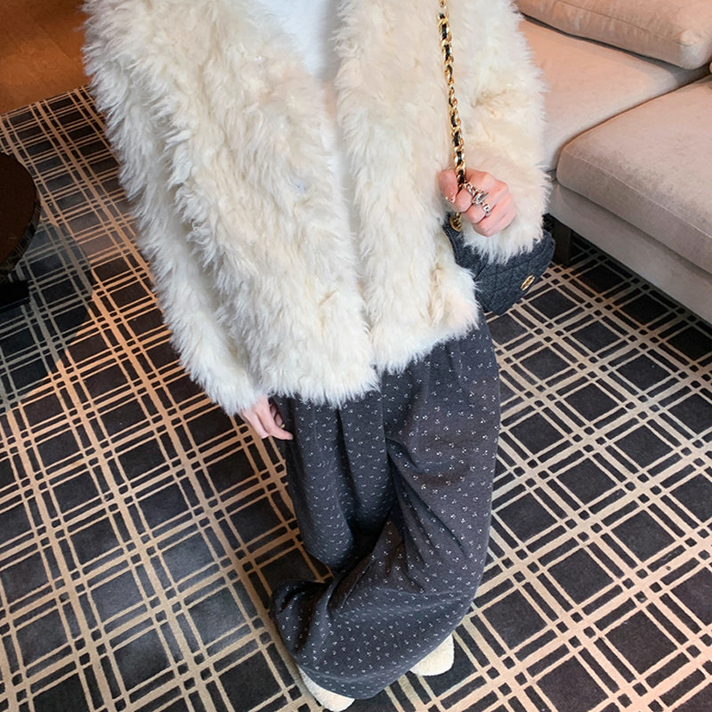 直筒百搭显瘦拖地长裤 孕妇磨毛碎花阔腿裤 韩版 休闲裤 秋冬外穿时尚
