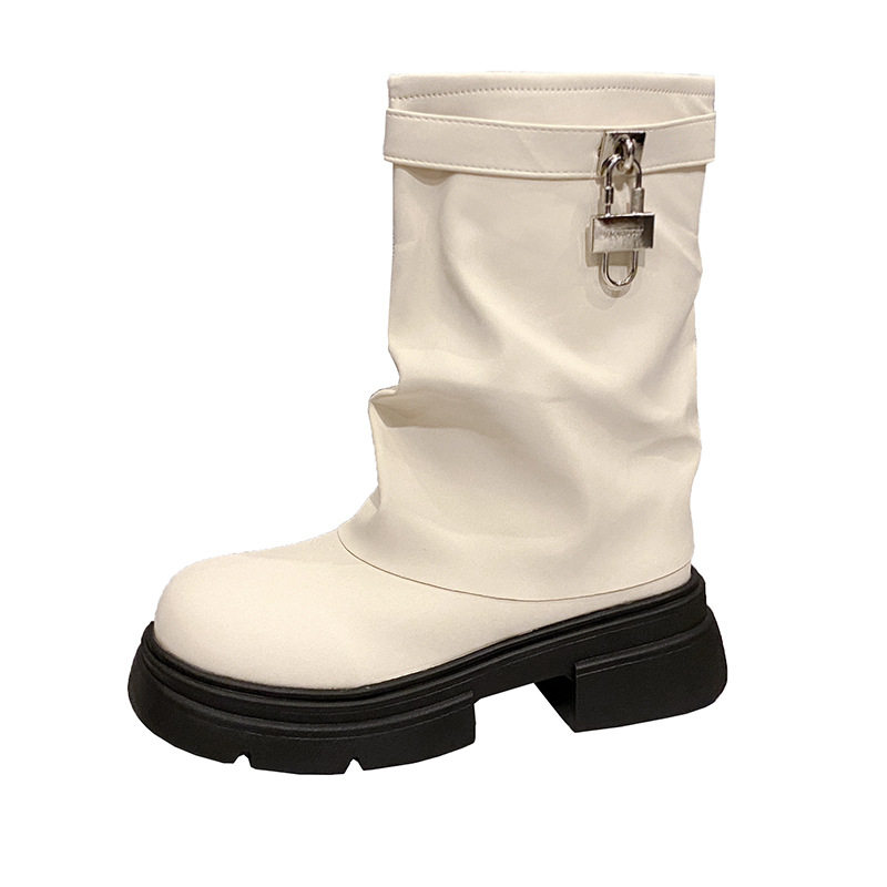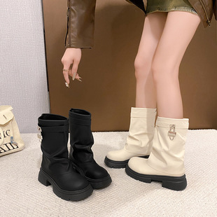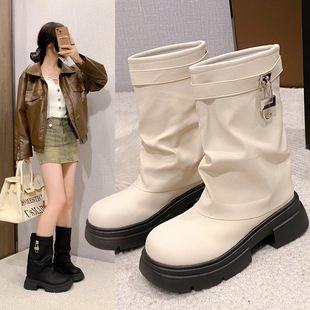靴子女春秋短靴厚底裤 管靴粗跟复古马丁靴美拉德堆堆靴西部牛仔靴