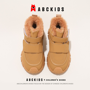 儿童棉鞋 真皮靴子雪地靴冬季 加绒二棉鞋 男童马丁靴2024年秋冬新款