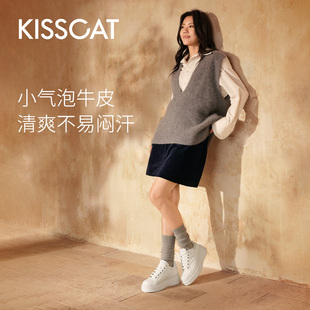 通勤舒适厚底小白鞋 松糕休闲板鞋 8cm内增高长腿鞋 KISSCAT接吻猫