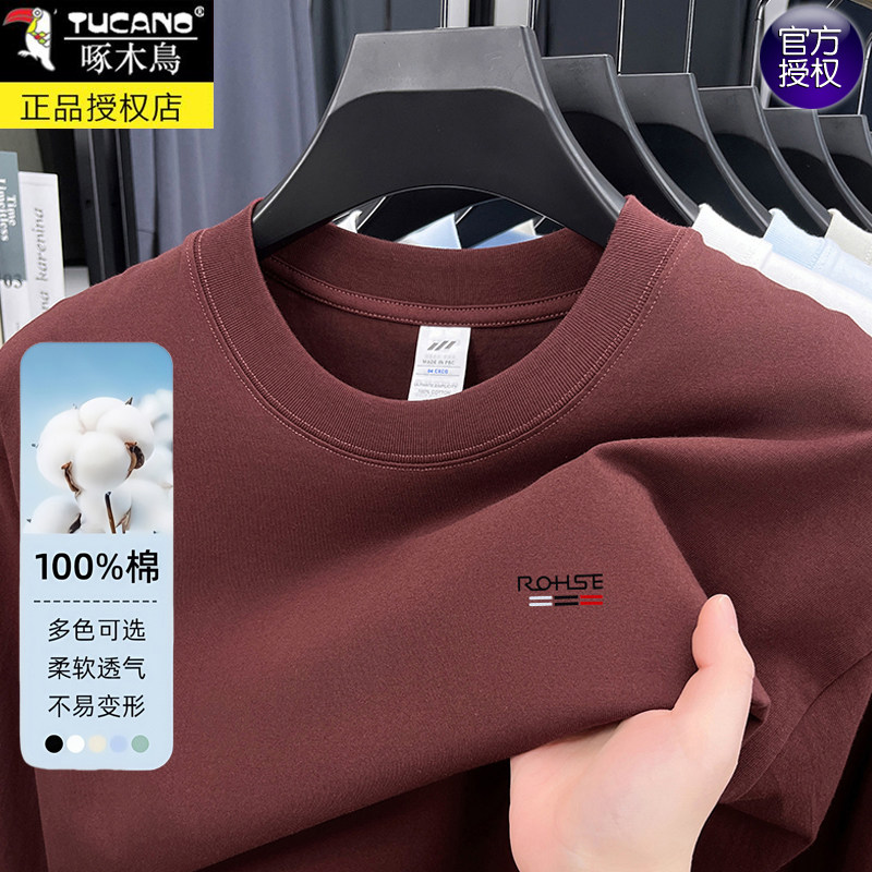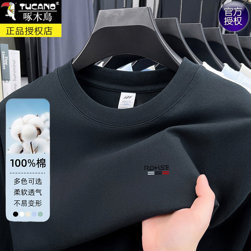 圆领卫衣秋衣加绒加厚打底衫 t恤秋装 保暖上衣 纯棉长袖 啄木鸟男士