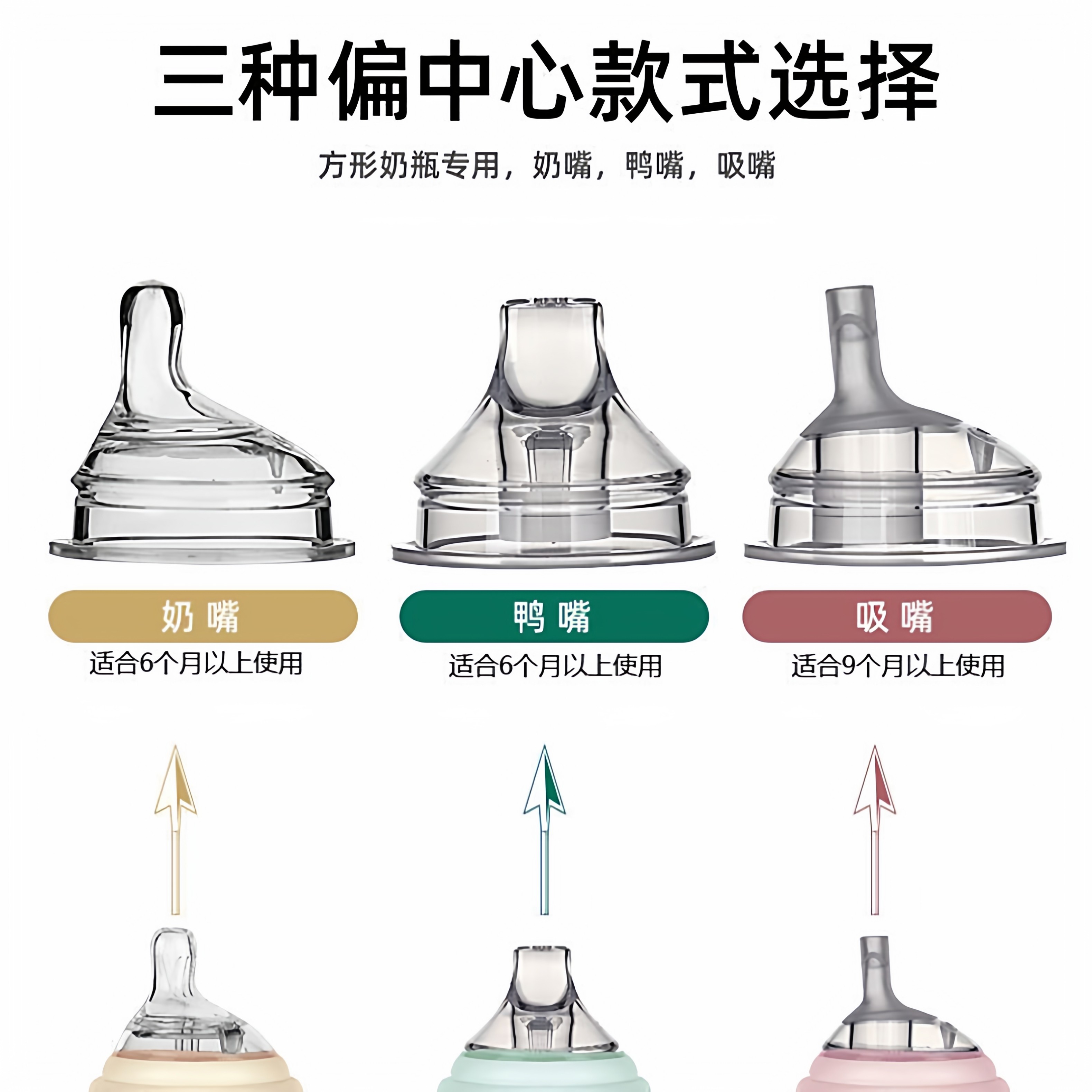 适配米姆160ml方形奶瓶配件婴儿食品级硅胶奶嘴鸭嘴直饮嘴吸管嘴