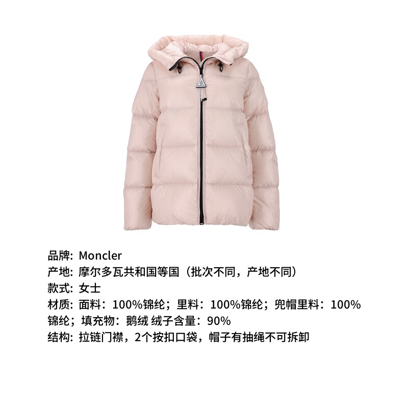 1A00068 鹅绒连帽羽绒服 597YG 女士短款 Moncler盟可睐