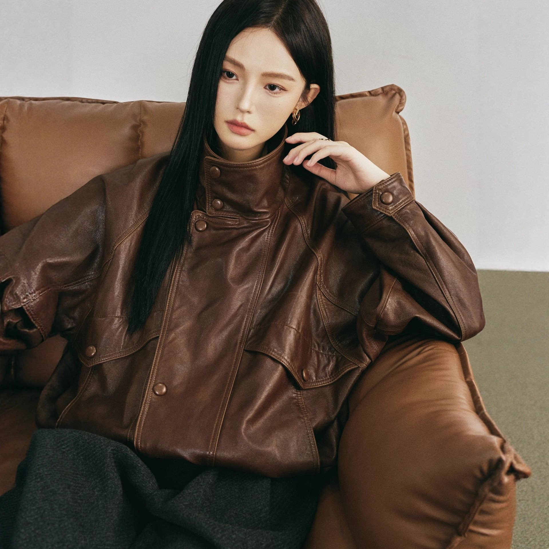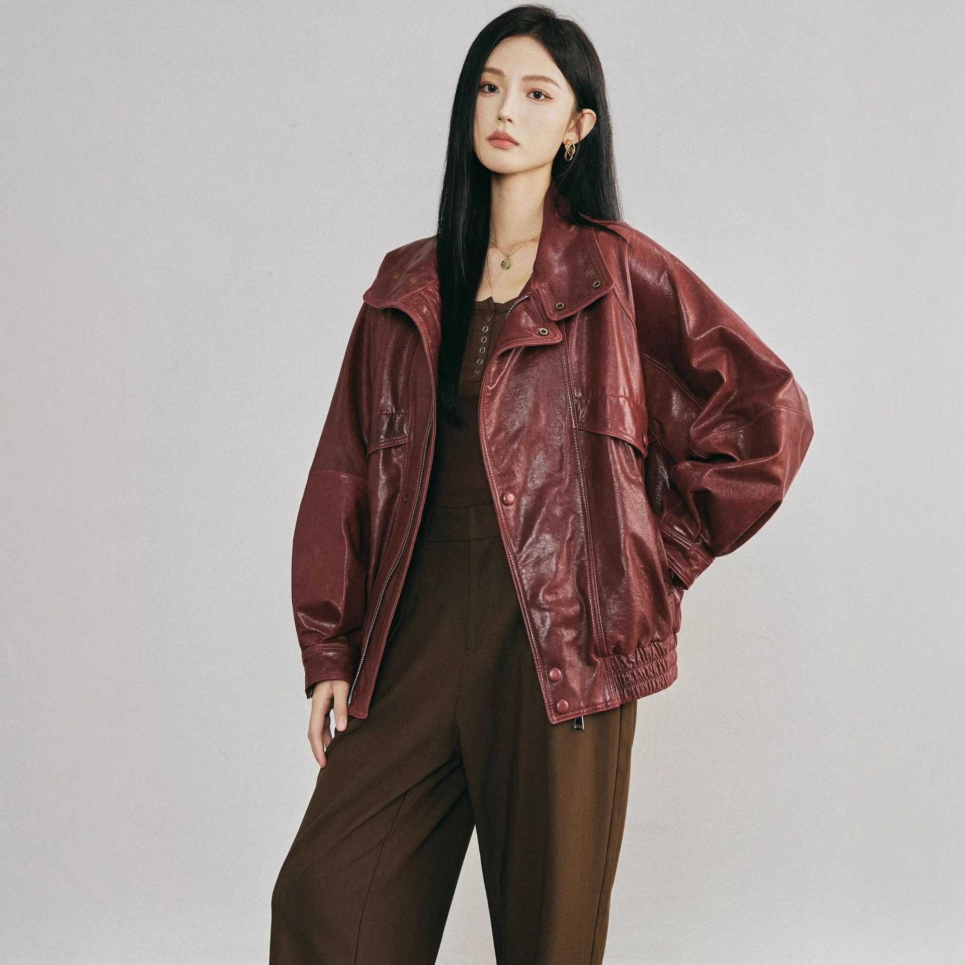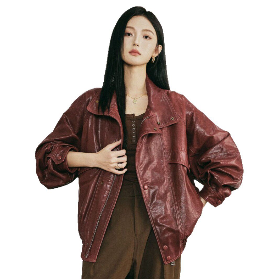 时尚 韩版 设计感夹克外套女 新款 海宁真皮绵羊皮宽松皮衣2025春秋季