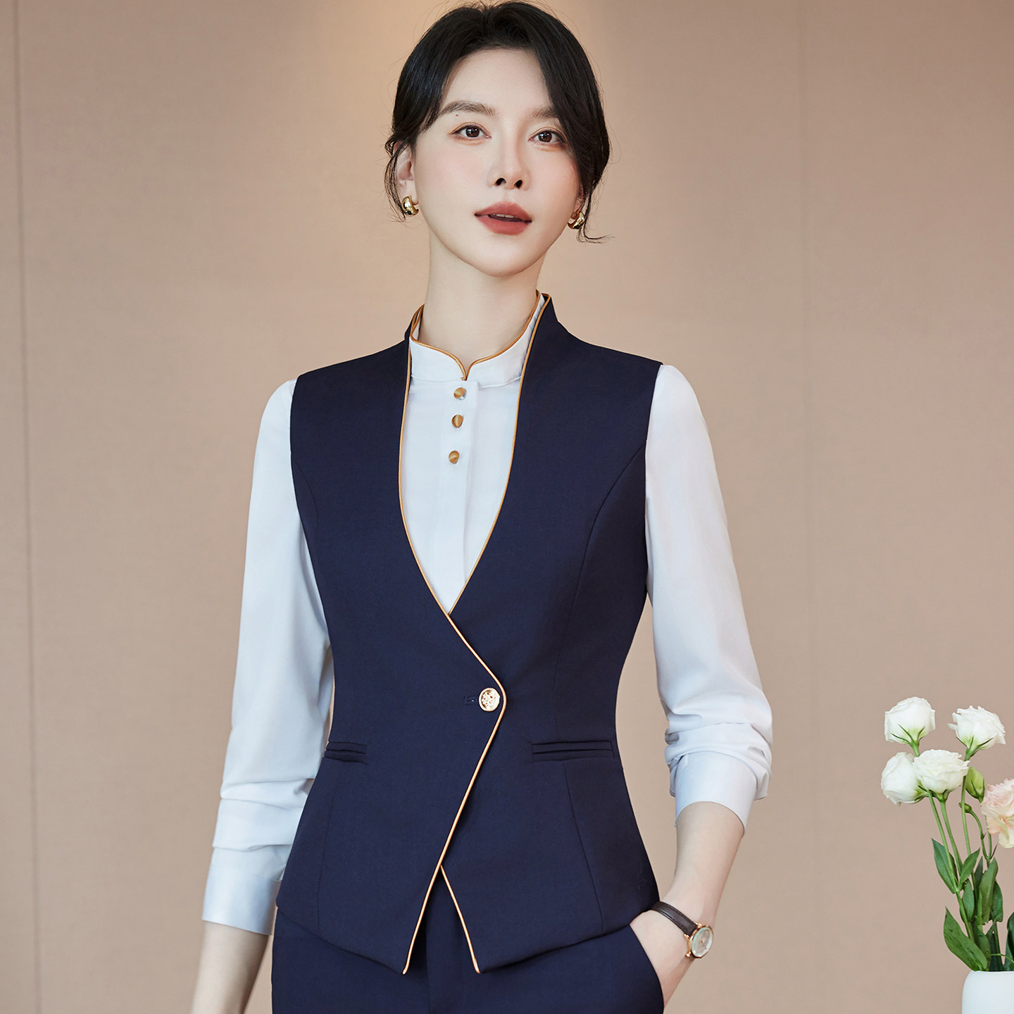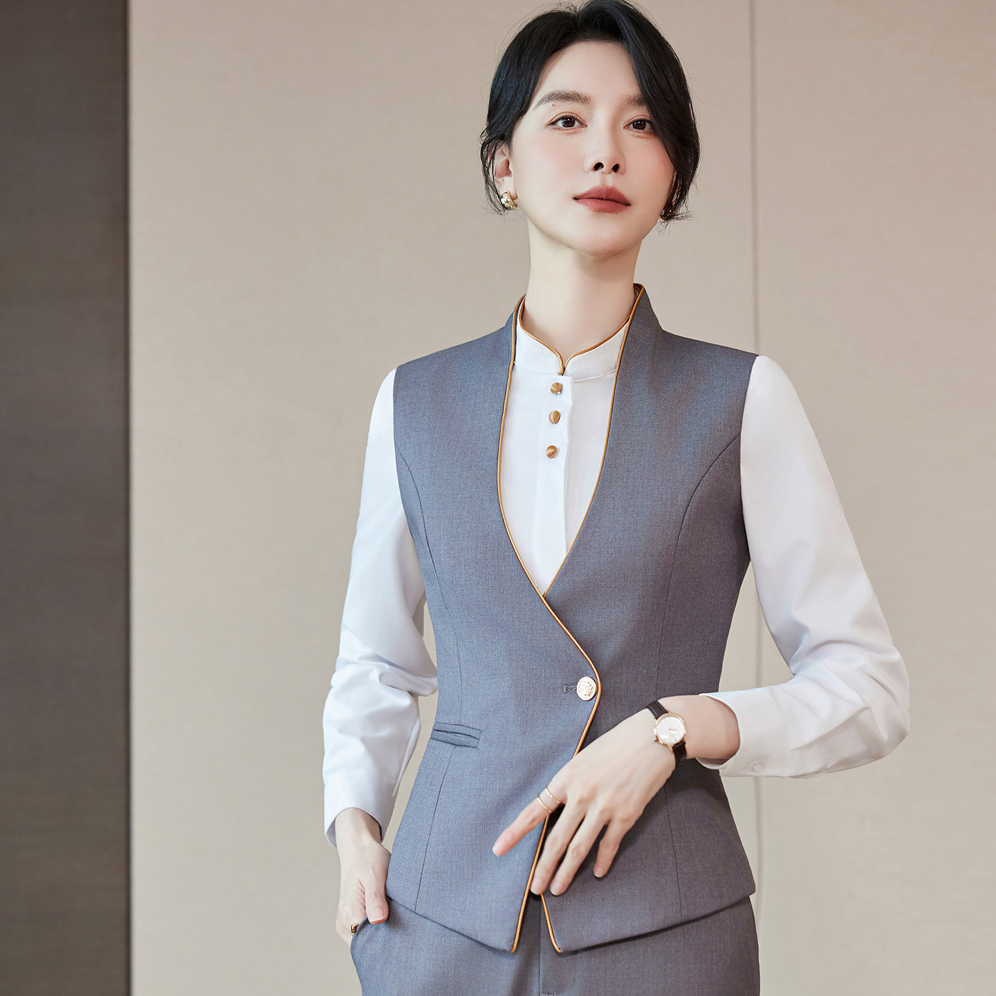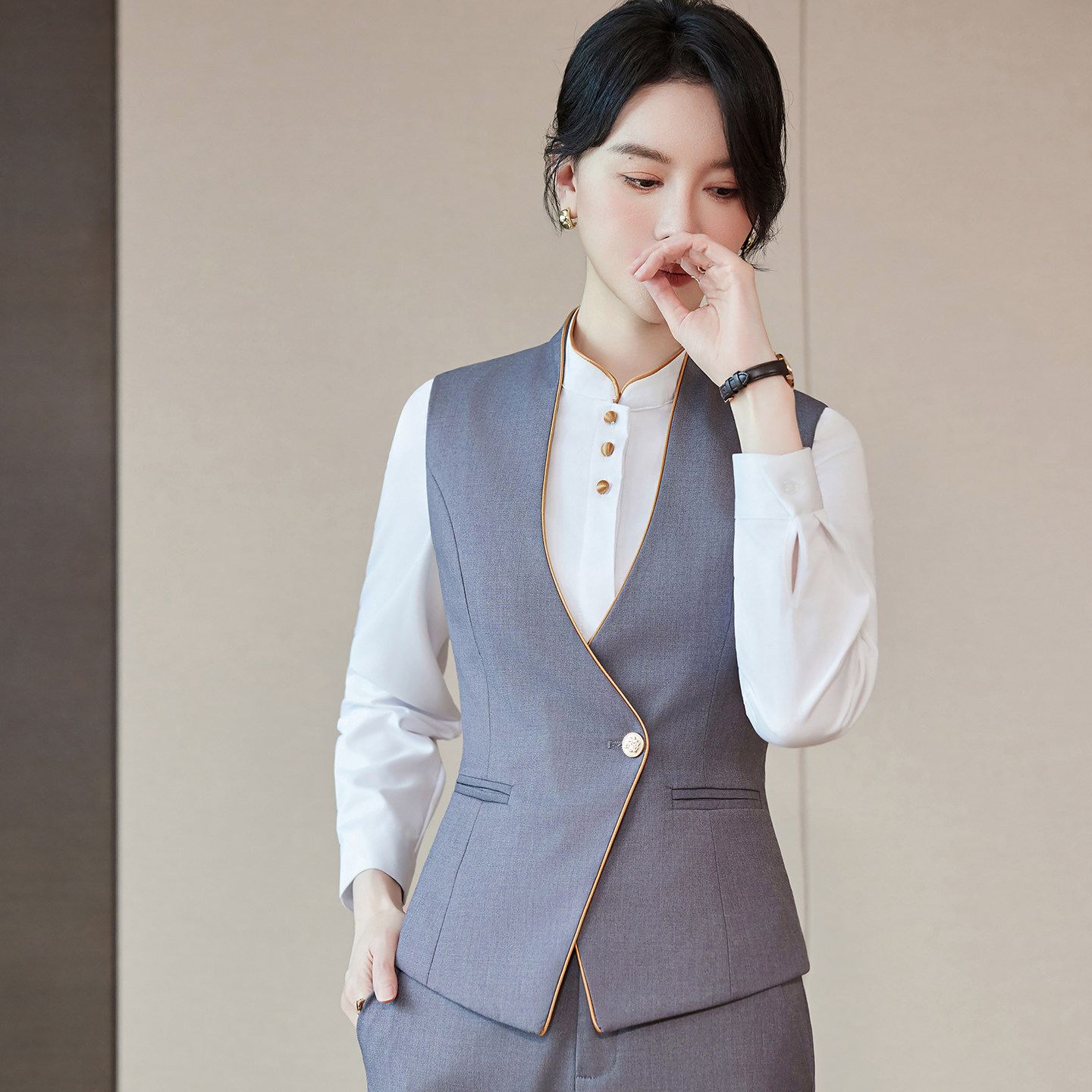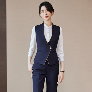 气质灰色马甲套装 工作服套裙印字 商务通勤马夹酒店会所俱乐部中式