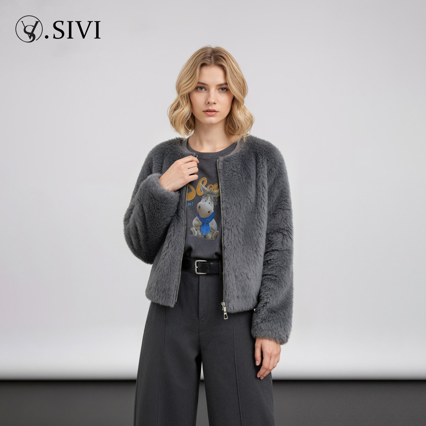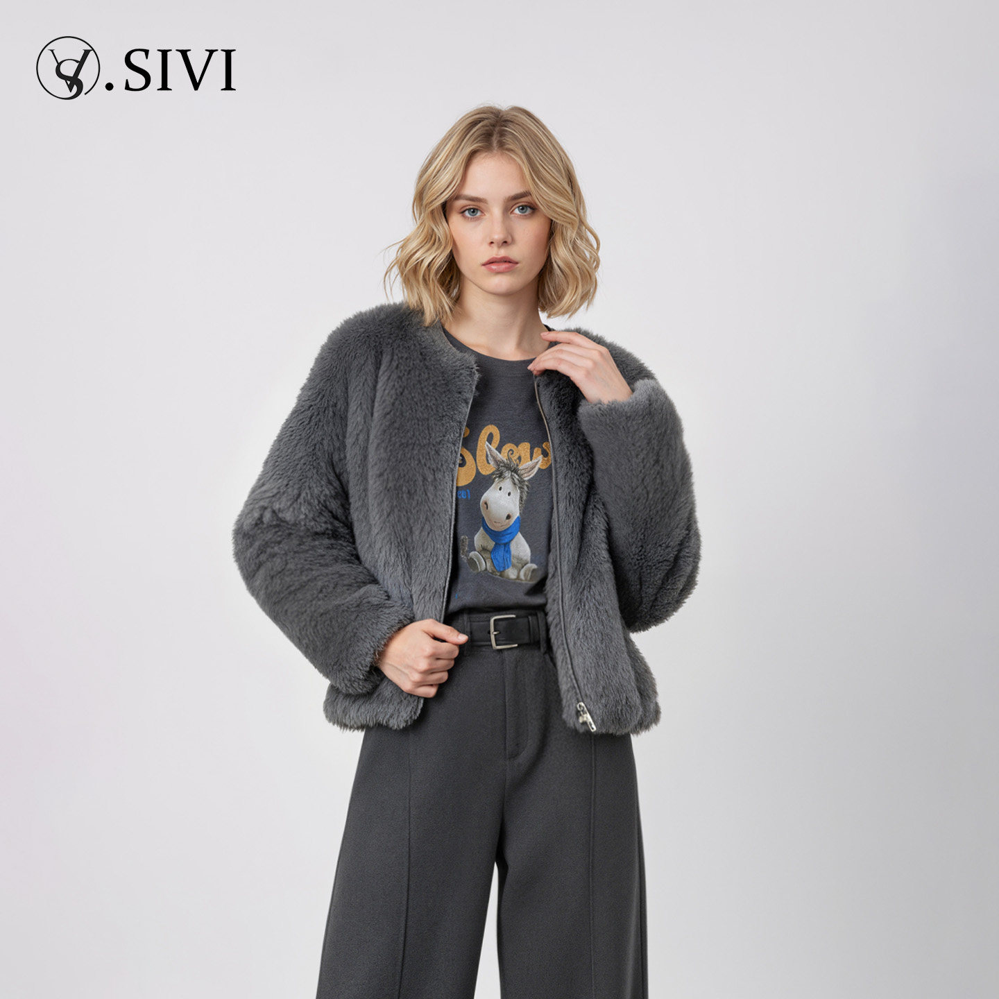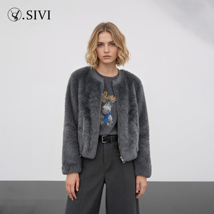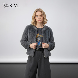 休闲百搭高级时尚 熙薇 新款 2025秋季 毛绒外套H6200 珠光灰裘