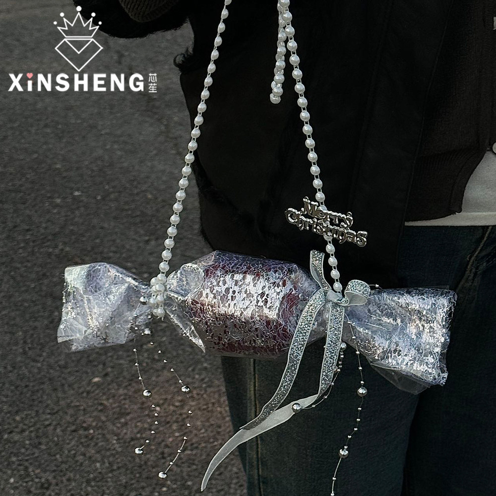 材料节日礼物花艺资材 平安果精致包装 芯苼 圣诞节银色糖果手拎包