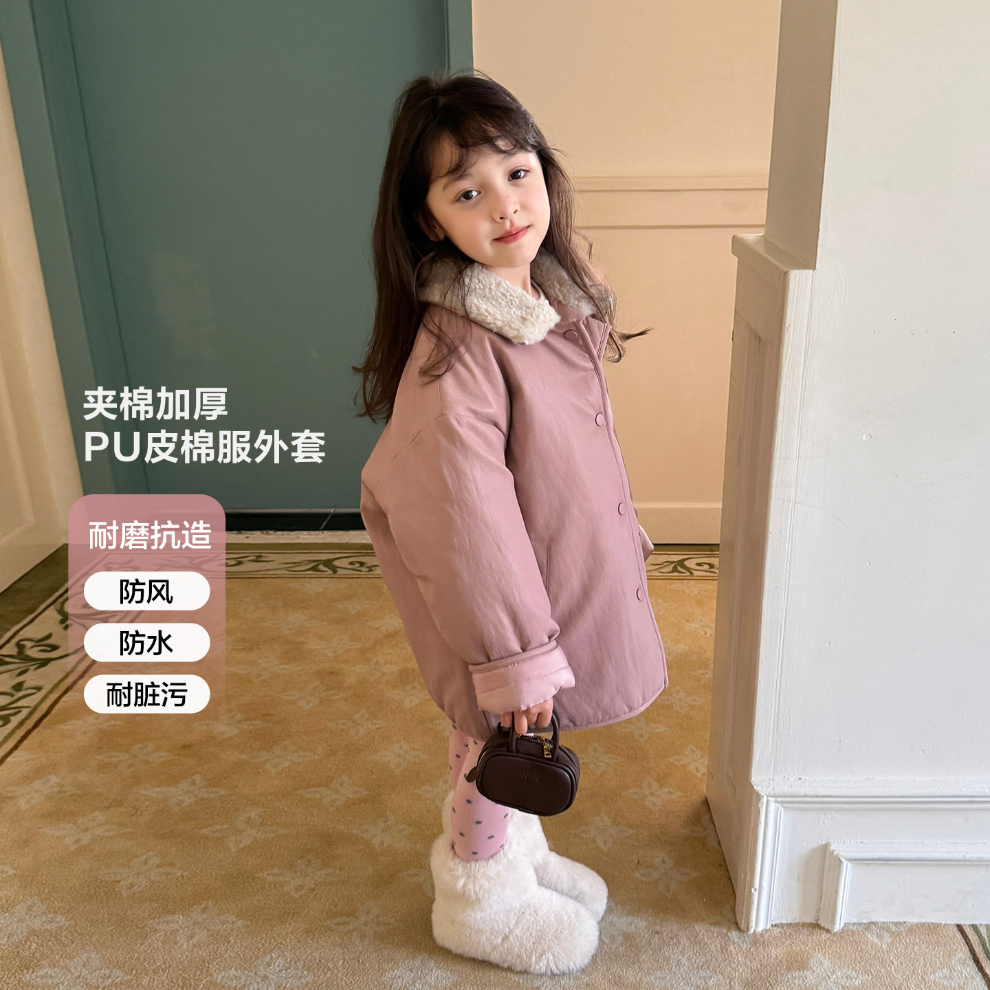 NECOYEP美式 复古毛绒连帽棉衣男女秋冬宽松休闲百搭保暖中长外套
