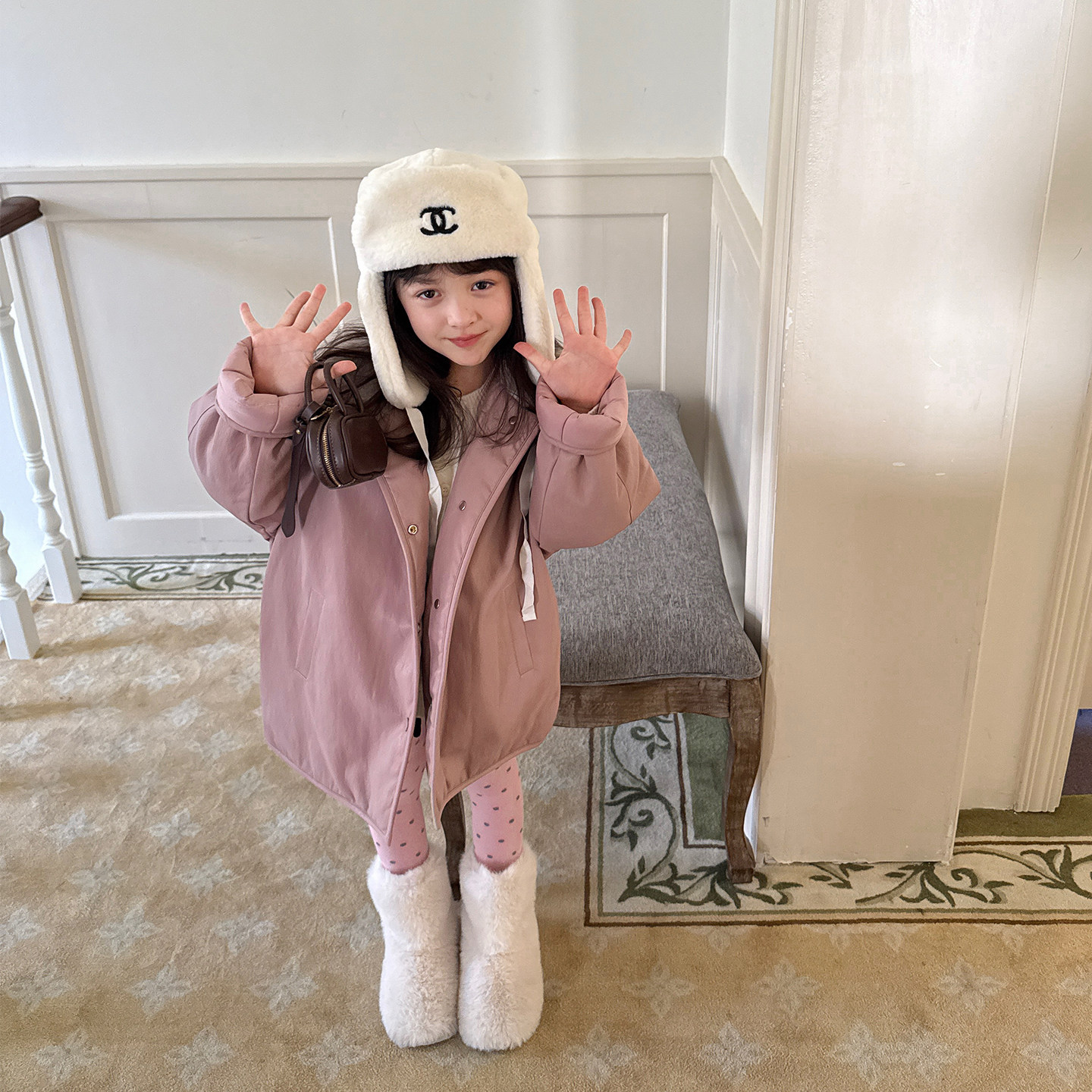 慵懒风派克服棉服 藏青色复古加厚夹棉连帽外套女胖mm美式 大码 女装