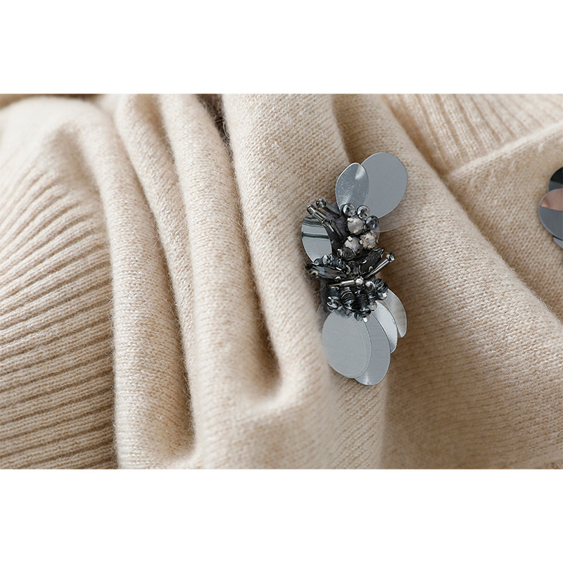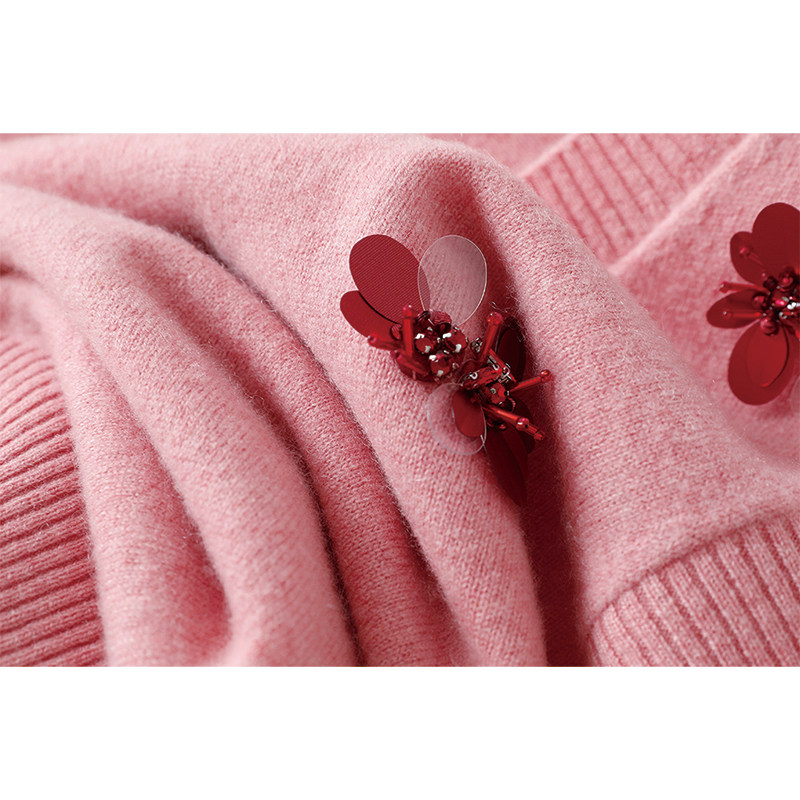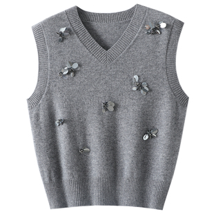 千金初露面 马甲 镜面珠片100%纯山羊绒背心女V领纯羊绒毛衣针织衫