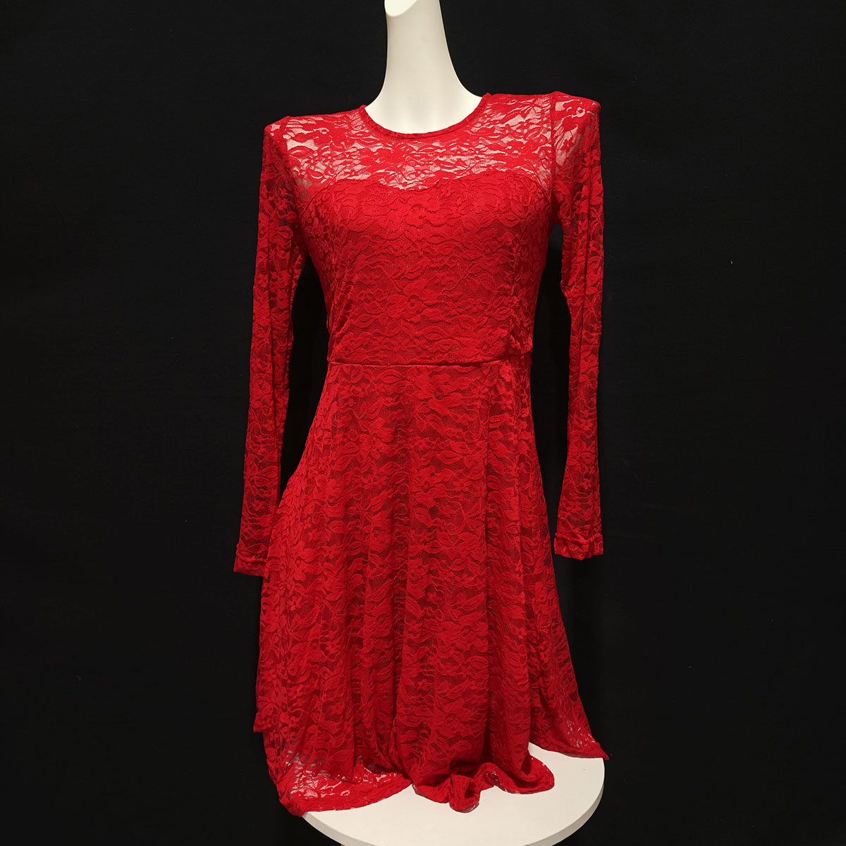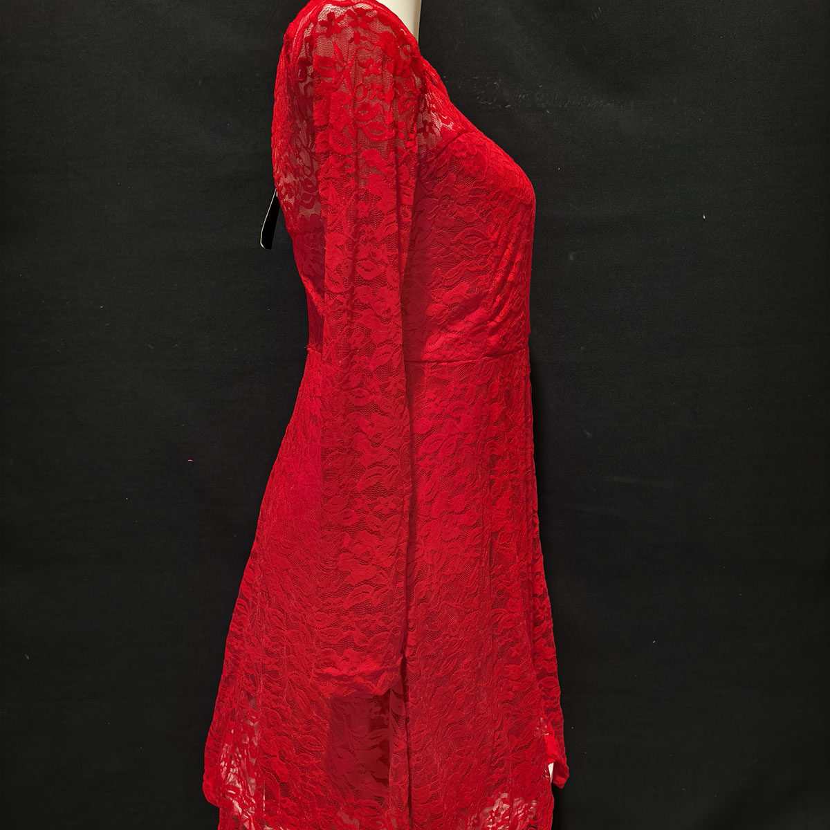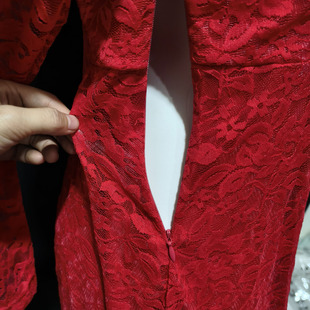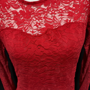 侧边拉链居家睡裙夜店礼服 连衣裙修身 性感蕾丝薄款 透视红色长袖