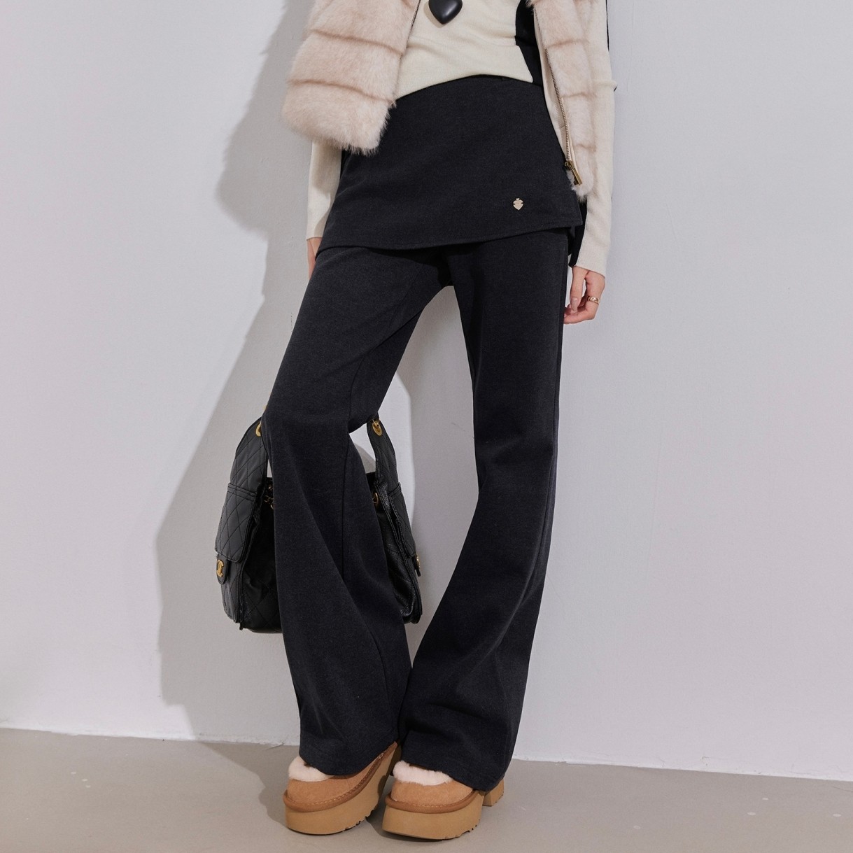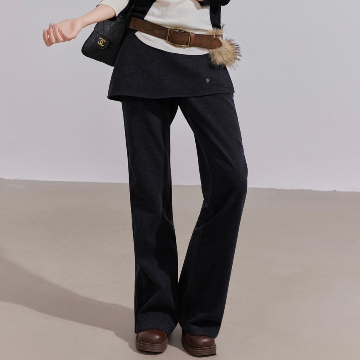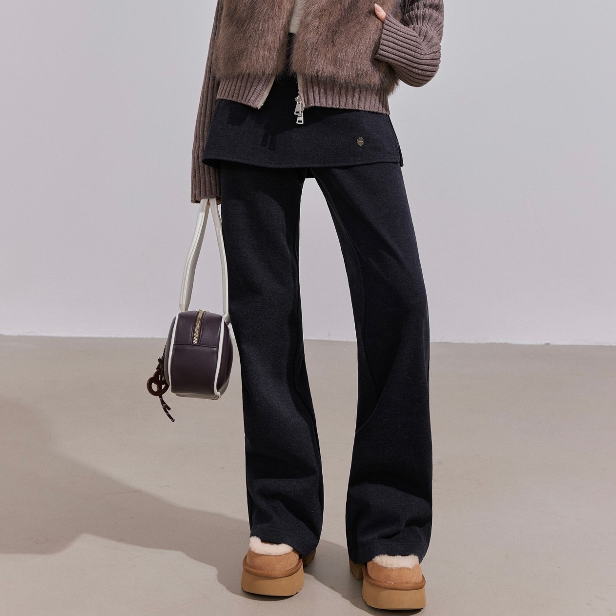 加绒阔腿裤 OTEBANBASS25SS假两件屁帘毛呢微喇裤 女高腰显瘦休闲裤