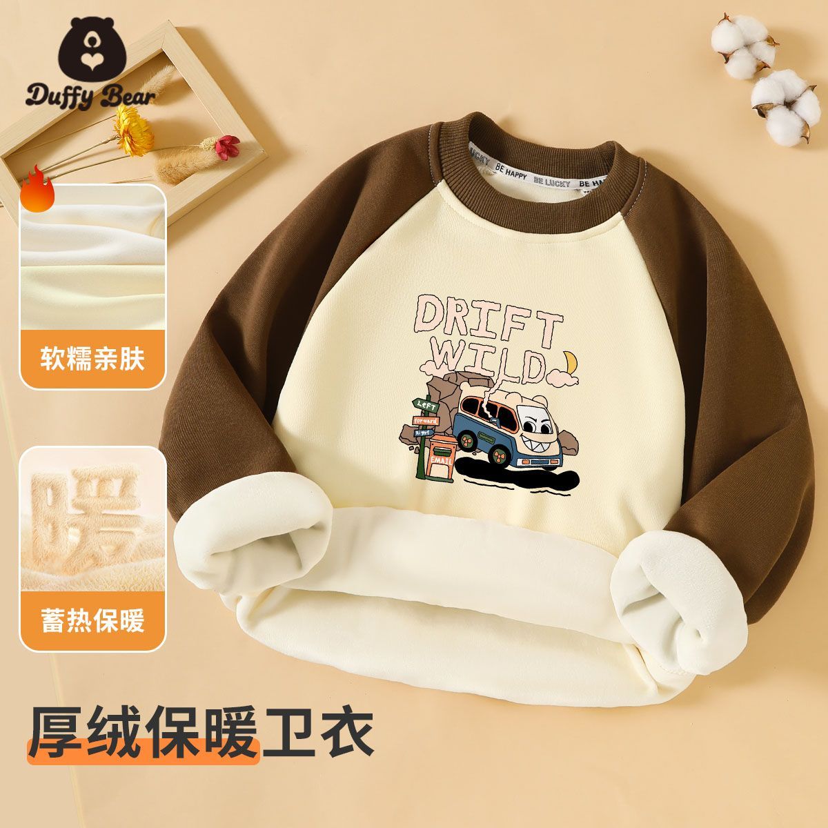 儿童上衣秋冬季 加厚保暖宝宝秋衣加绒家居服内衣儿童衣服百搭冬装