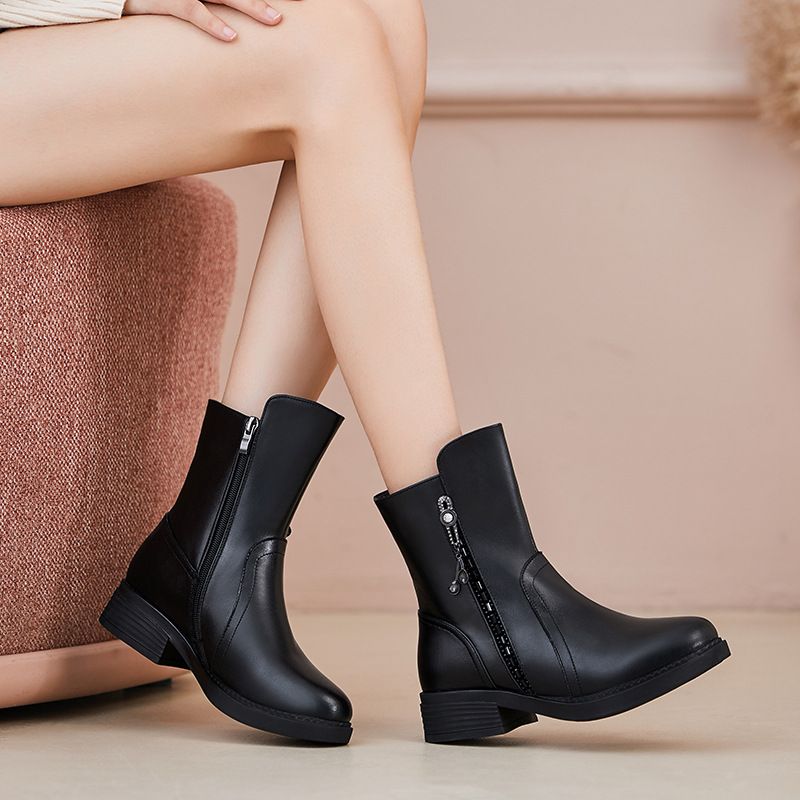 妈妈鞋 短靴大码 雪地棉皮靴 羊毛女靴真皮保暖中筒靴中跟女棉鞋 冬季