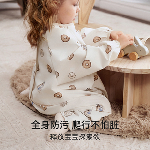 欧孕宝宝连体罩衣户外婴儿爬行防水防脏爬爬服反穿衣儿童吃饭围兜