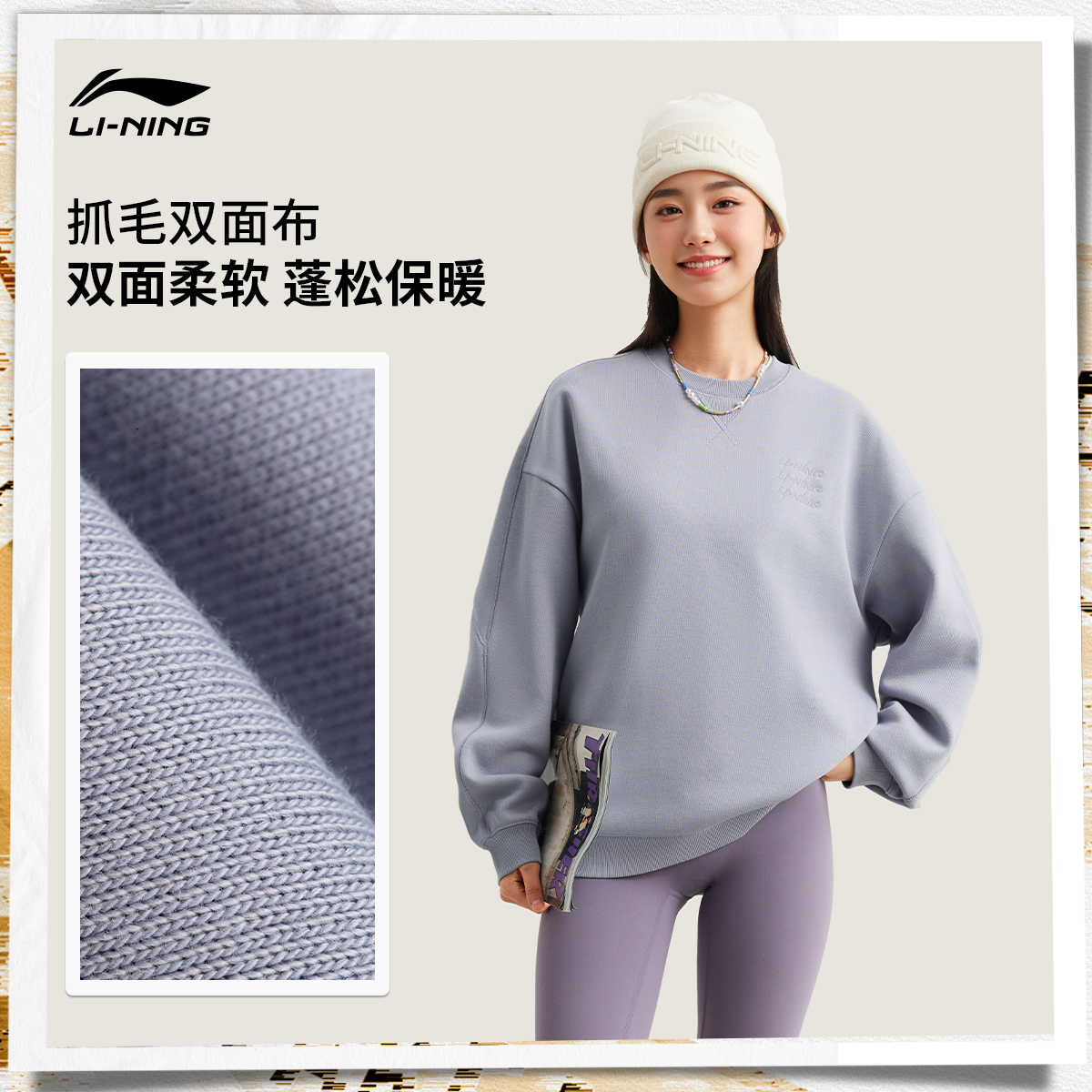情侣上衣 女加绒圆领套头衫 匹克卫衣秋冬新款 男运动服宽松休闲长袖