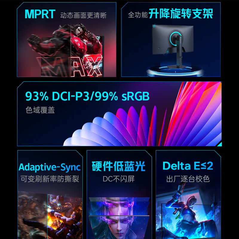 雷神黑武士27英寸2K超频260Hz游戏电竞升降旋转显示器CQ27F240L