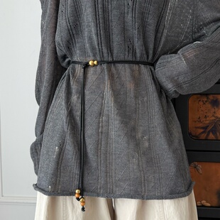 百搭 饰裙子腰链个性 新款 串珠细腰绳配毛衣复古高级金属珠腰带女装