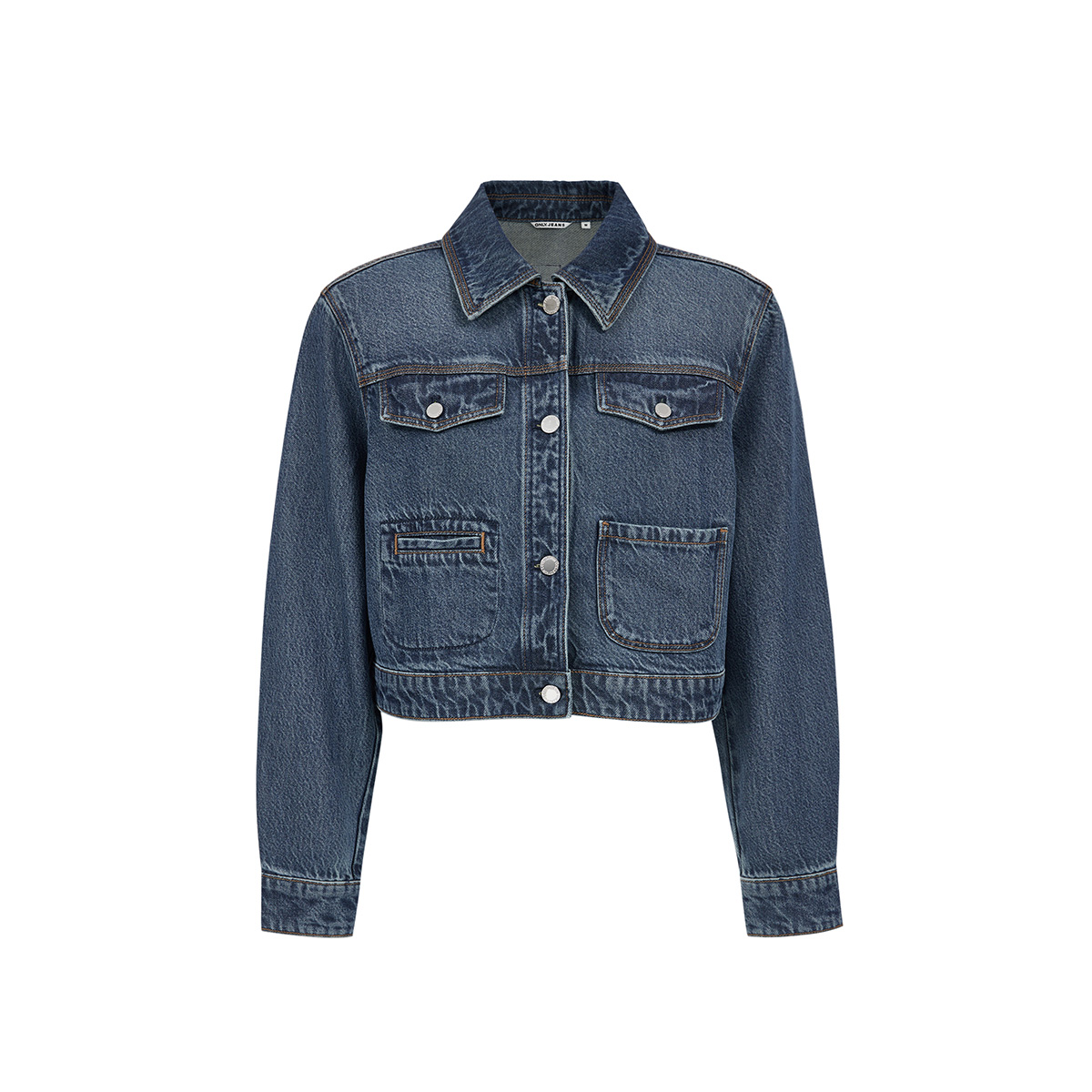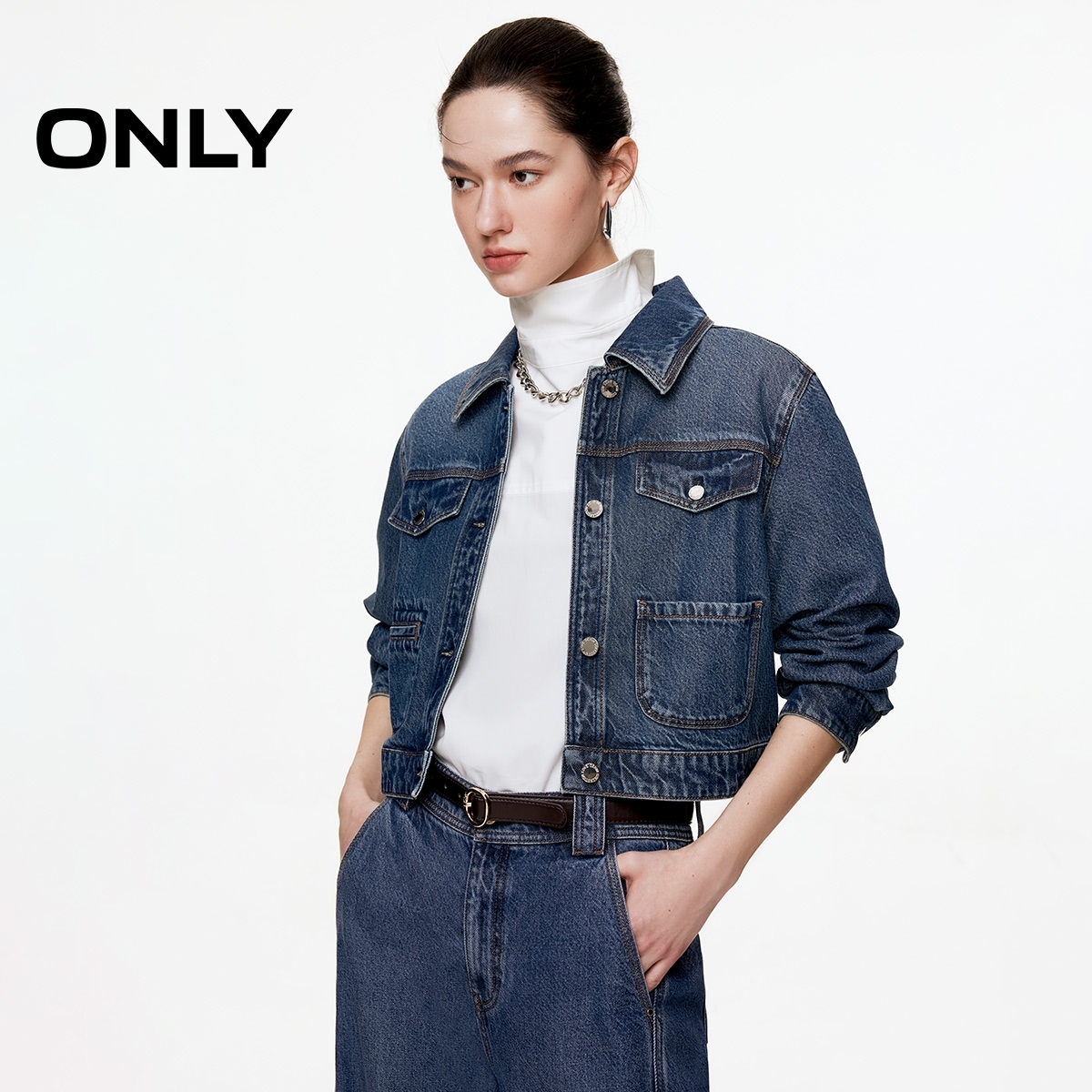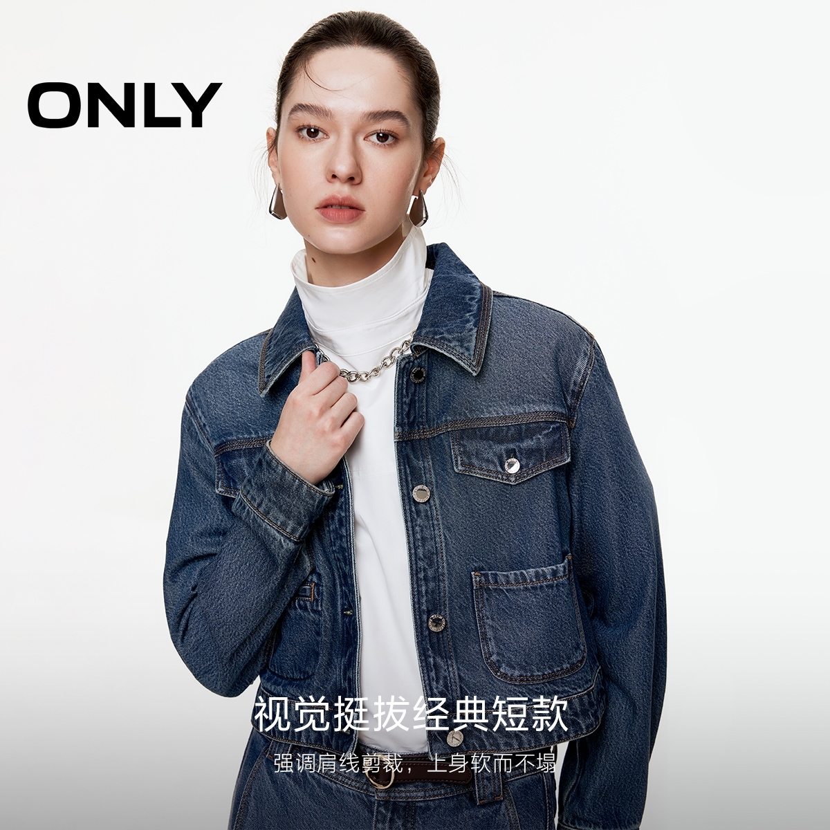 o区绫致ONLY2025秋冬新款 牛仔外套女 莱赛尔垂感翻领直筒短款