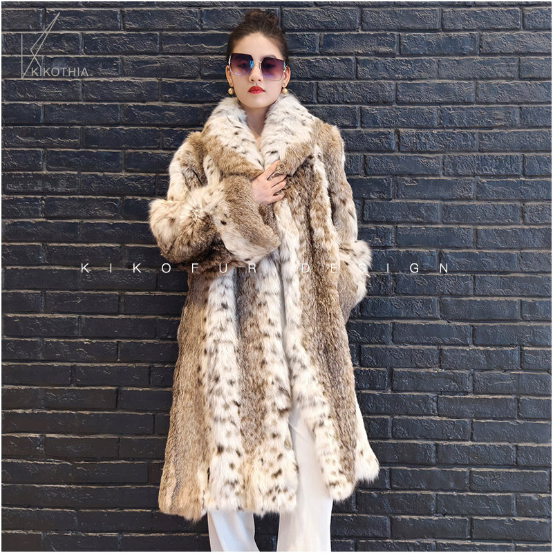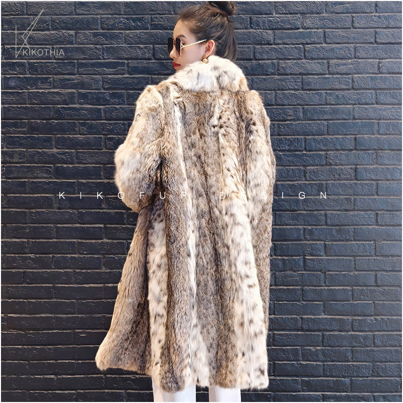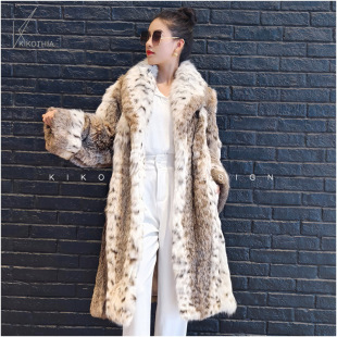 咔咔皮草 名媛范超大青果领天然原皮原色进口美喵皮草长外套