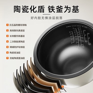 九阳0氟珐琅瓷釜电饭煲家用微压快煮4升智能感温多功能电饭锅