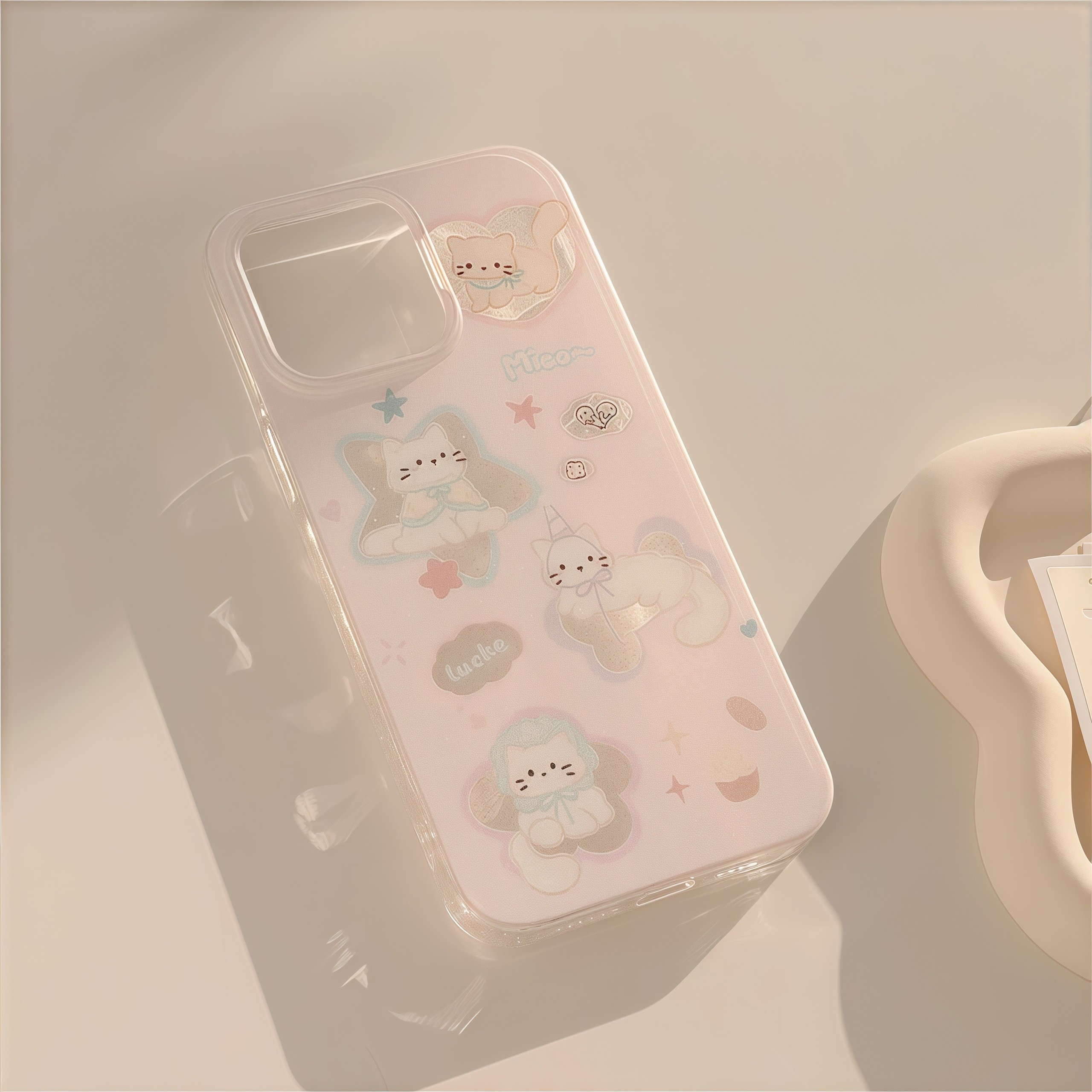 适用14苹果16promax手机壳13可爱粉星星猫咪iphone15plus软闪粉12