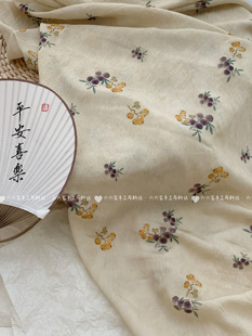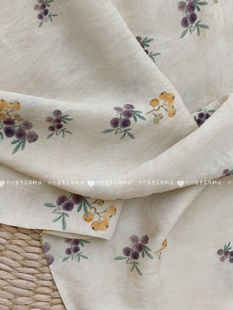 布料 服装 天丝麻数码 印花面料中国风小蓝莓旗袍连衣裙女装