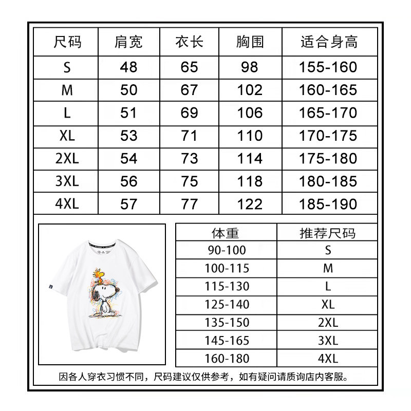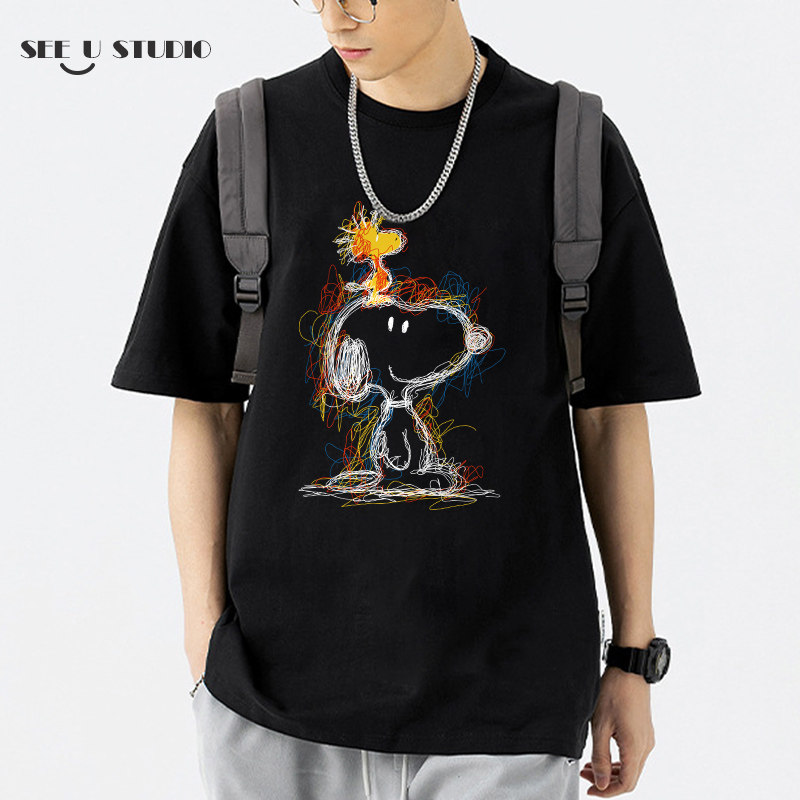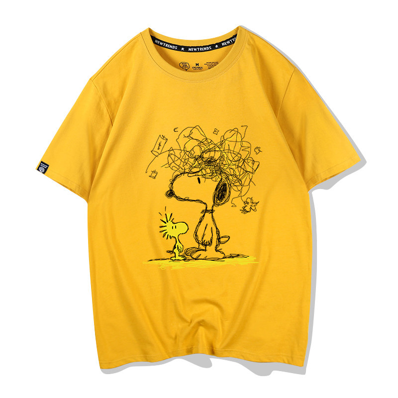 史努比糊涂塌客周边t恤情侣短袖 宽松复古印花纯棉上衣夏 男女同款