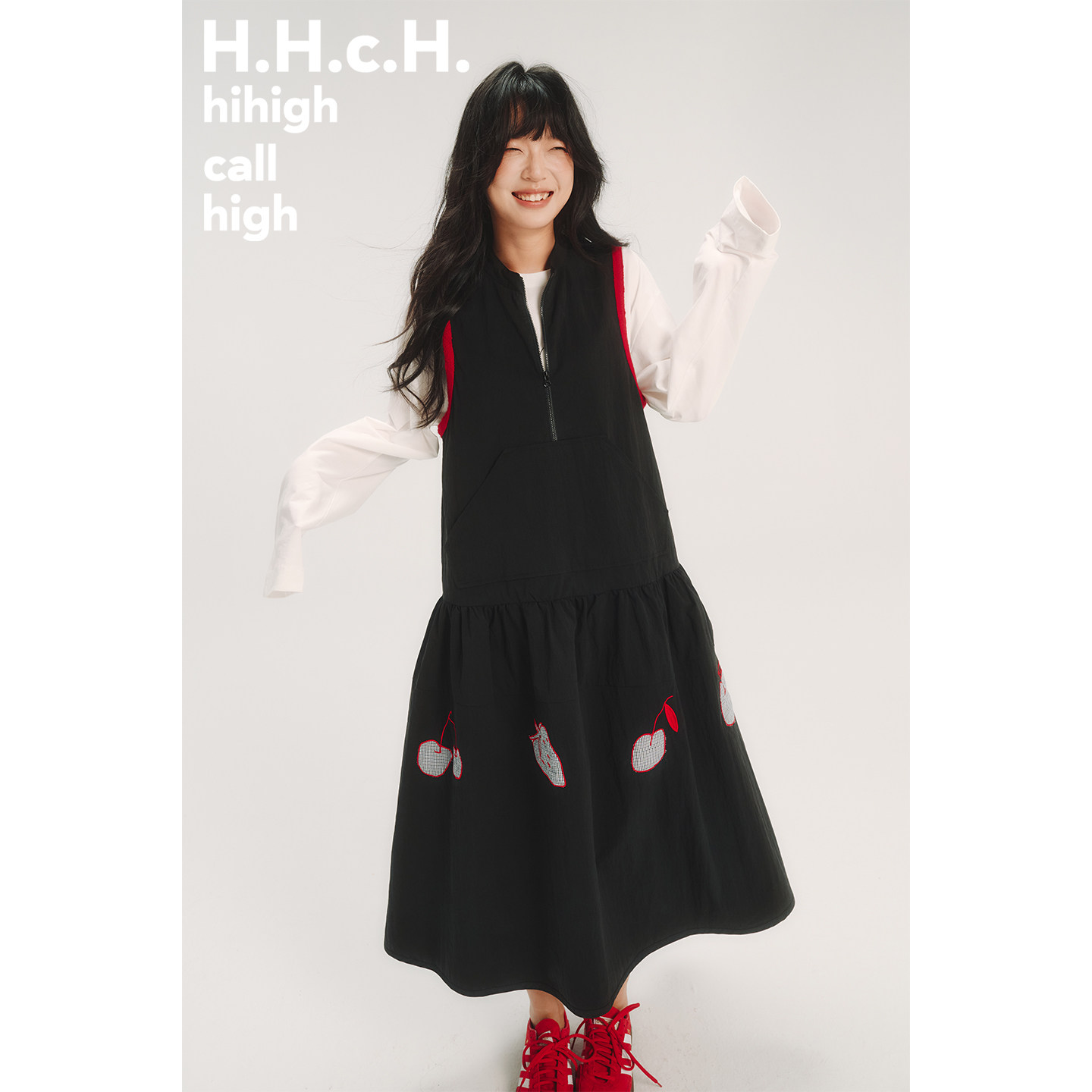 无袖 手绘水果撞色贴布绣半开领长款 连衣裙 AW25 HHCH口海