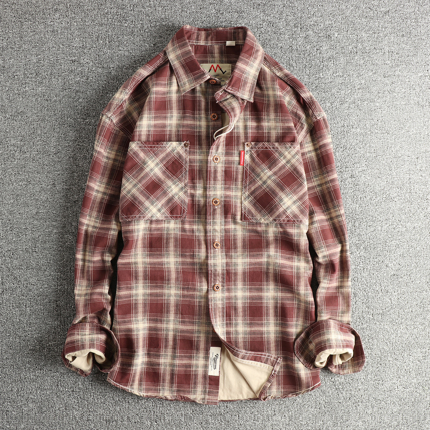 V37日系复古原牛水洗牛仔衬衫 潮牌cityboy宽松休闲衬衣外套 男冬季