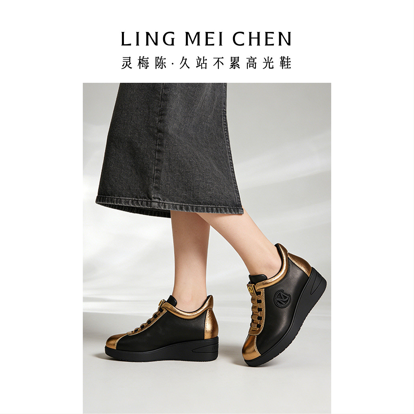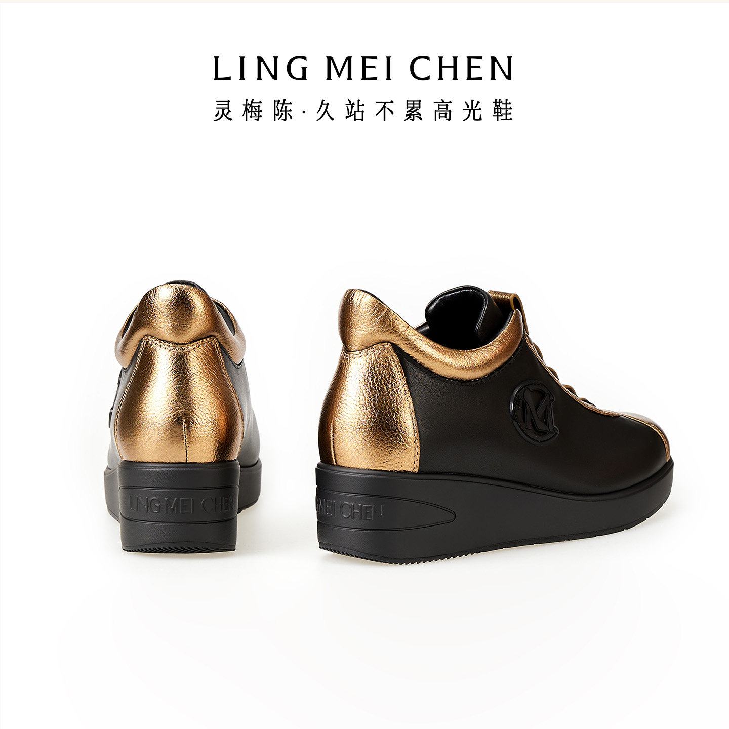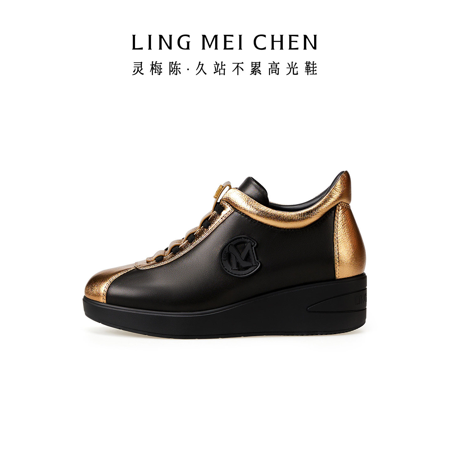 真皮黑色一脚蹬增高鞋 新款 休闲鞋 灵梅陈高光鞋 女鞋 女款 板鞋 厚底鞋