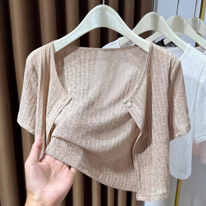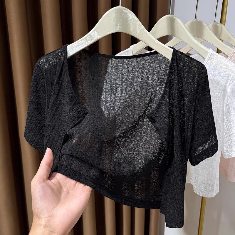 女夏薄款 配吊带裙 开衫 冰丝防晒短袖 小坎肩 小外搭披肩女2025新款