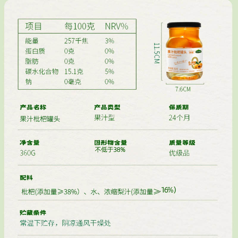 即食罐头 低脂零食 休闲食品 水果罐头 绿山果园果汁枇杷罐头