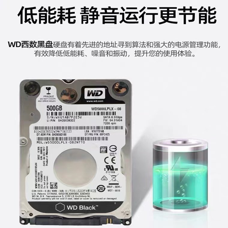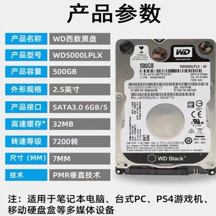 西数黑盘7200转32M 垂直500G串口sata3笔记本硬盘2.5寸机械硬7MM