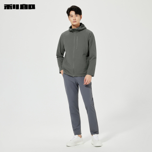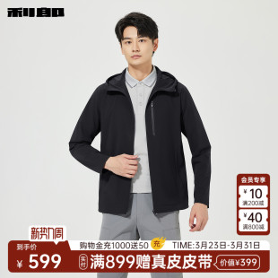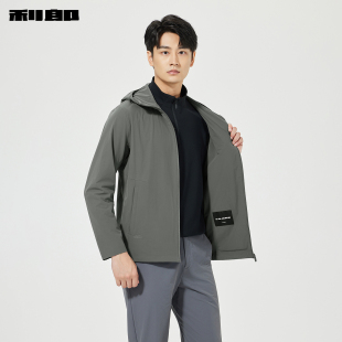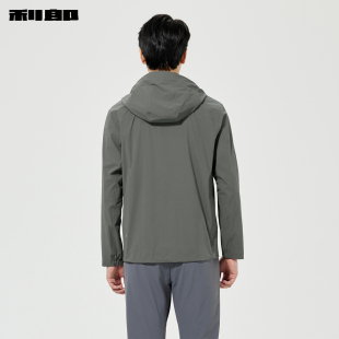 利郎官方 防水 风衣男士 春季 纯色连帽抽绳弹力外套男 新款 薄款