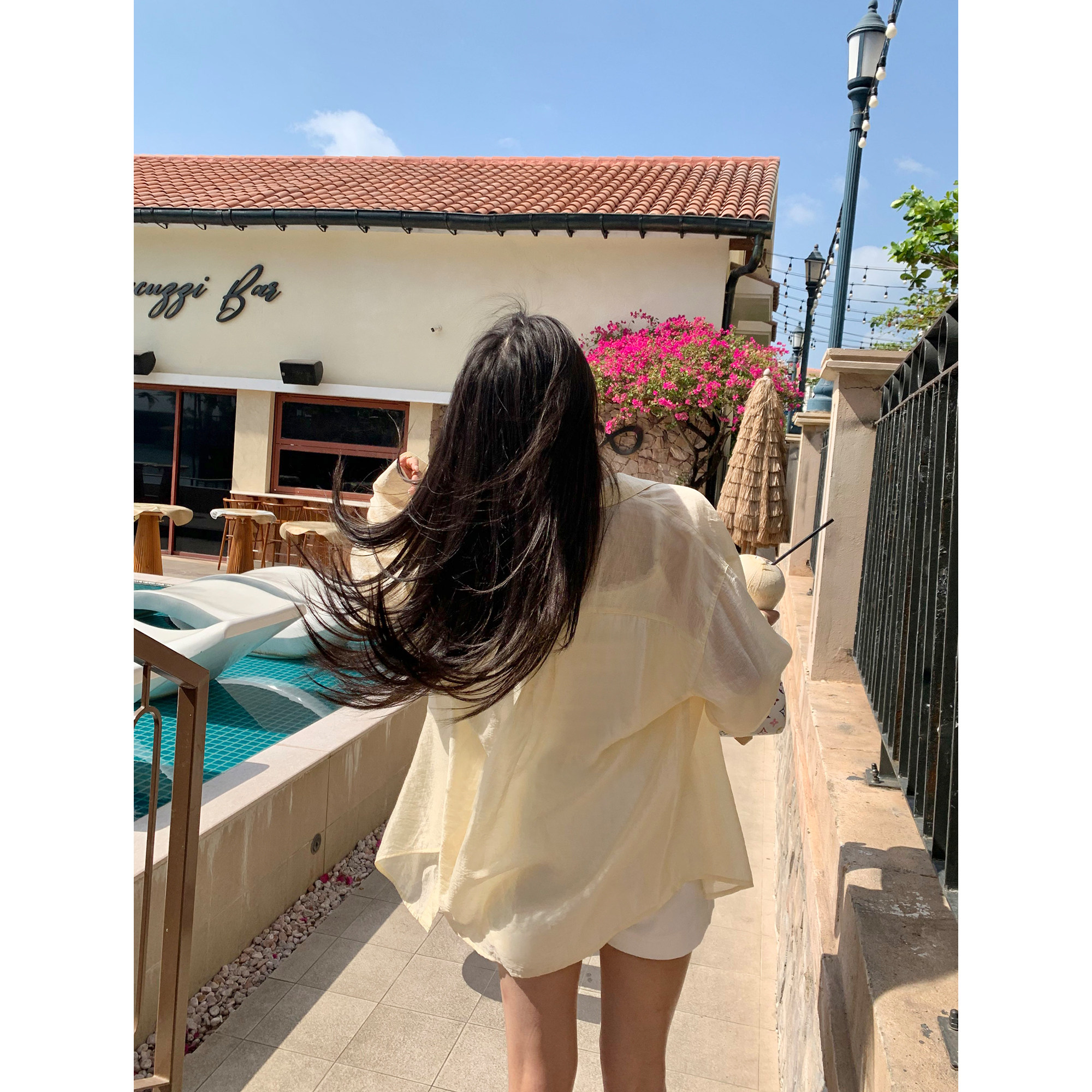 女慵懒风轻薄防晒长袖 微透肌理感宽松衬衫 衬衣 淡人穿搭 pusumede