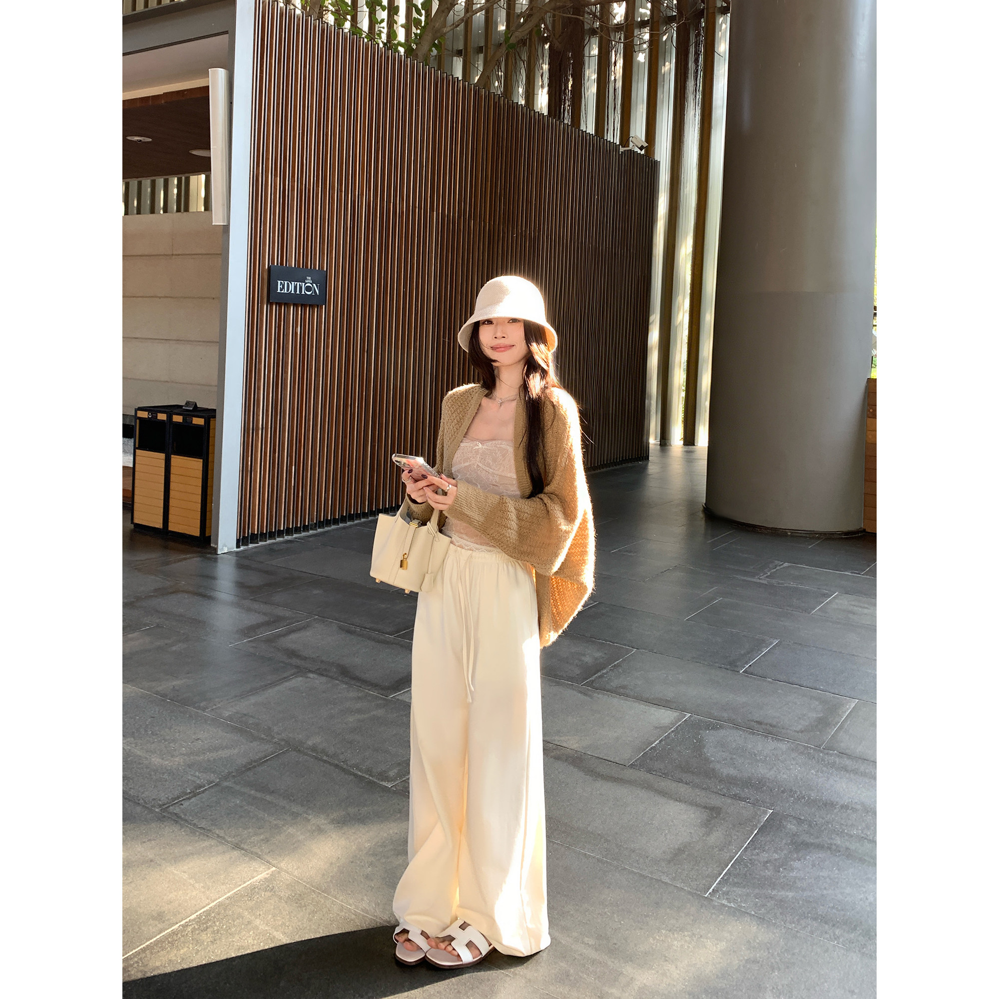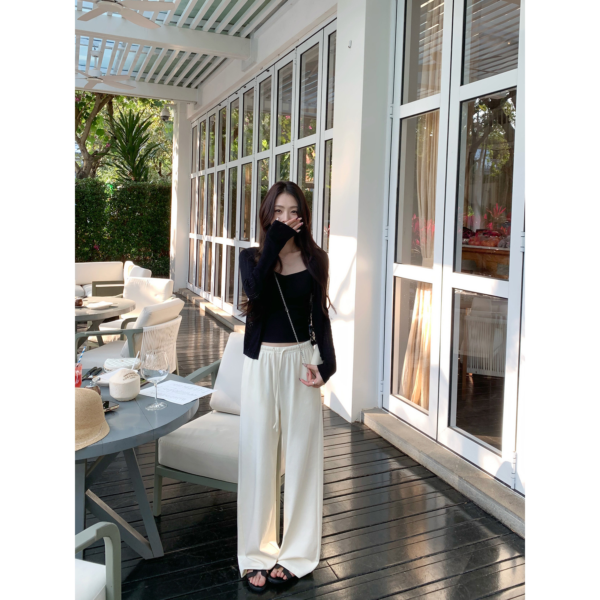 女宽松慵懒直筒拖地长裤 松紧腰抽绳阔腿休闲裤 空气感 pusumede