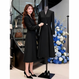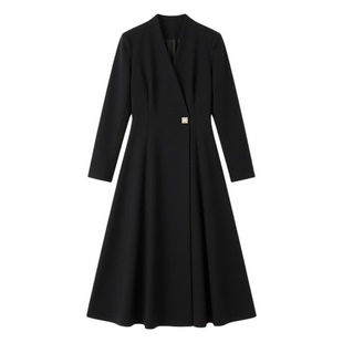 新款 长袖 大码 外套风衣式 连衣裙高级感胖MM显瘦V领长裙子 女装 春季