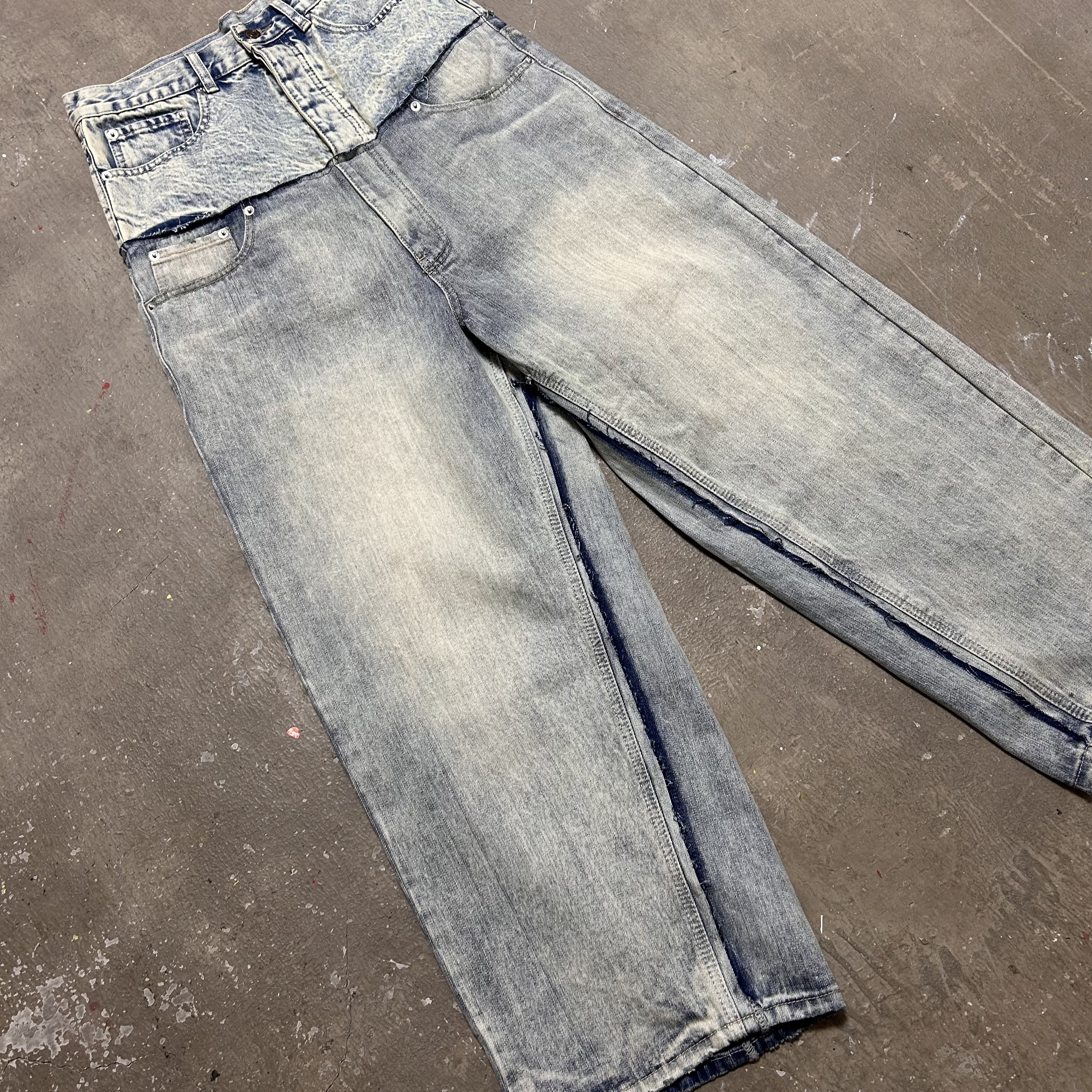 26ws 双腰假两件破坏洗水牛仔裤 Double Jeans Waist LIFEGOESON