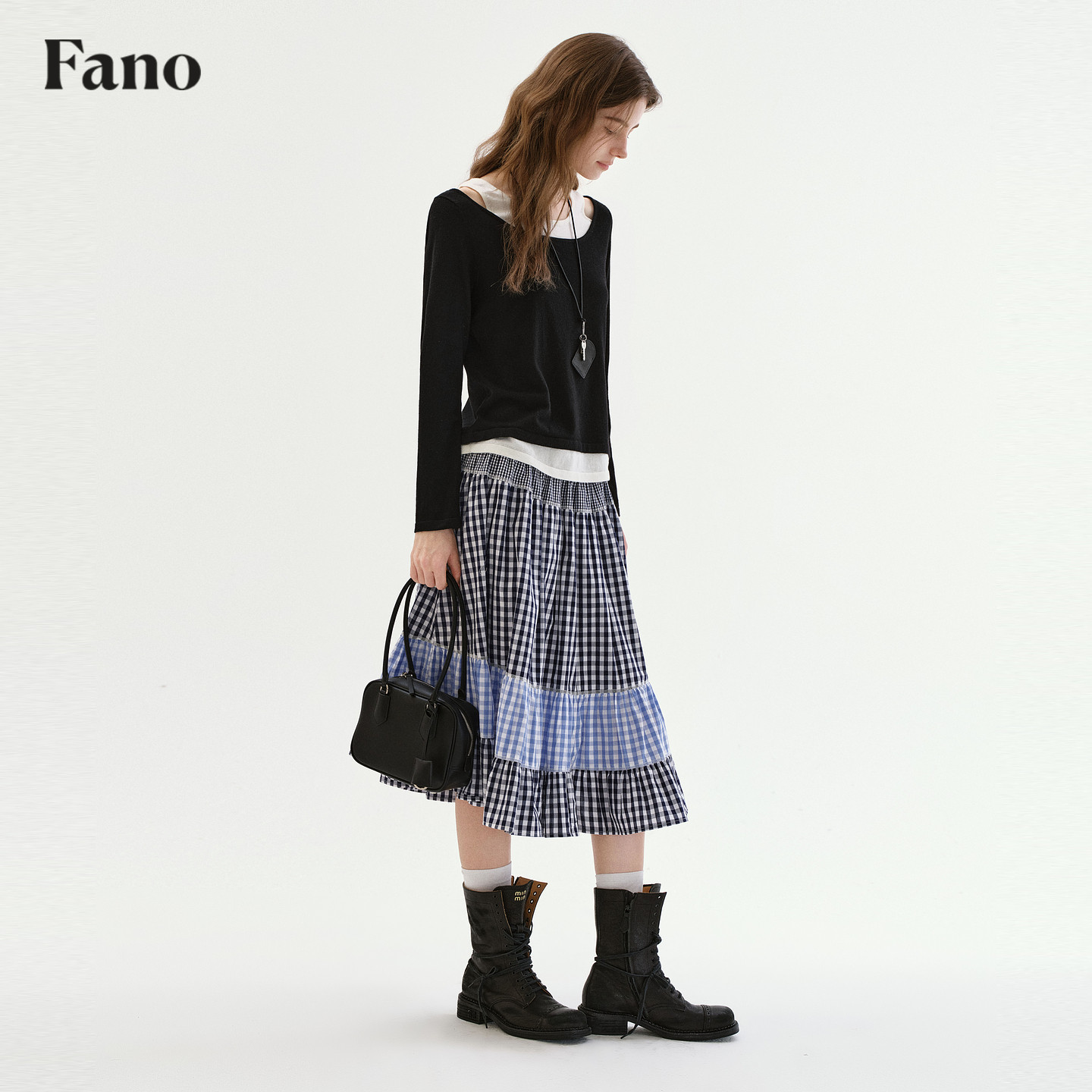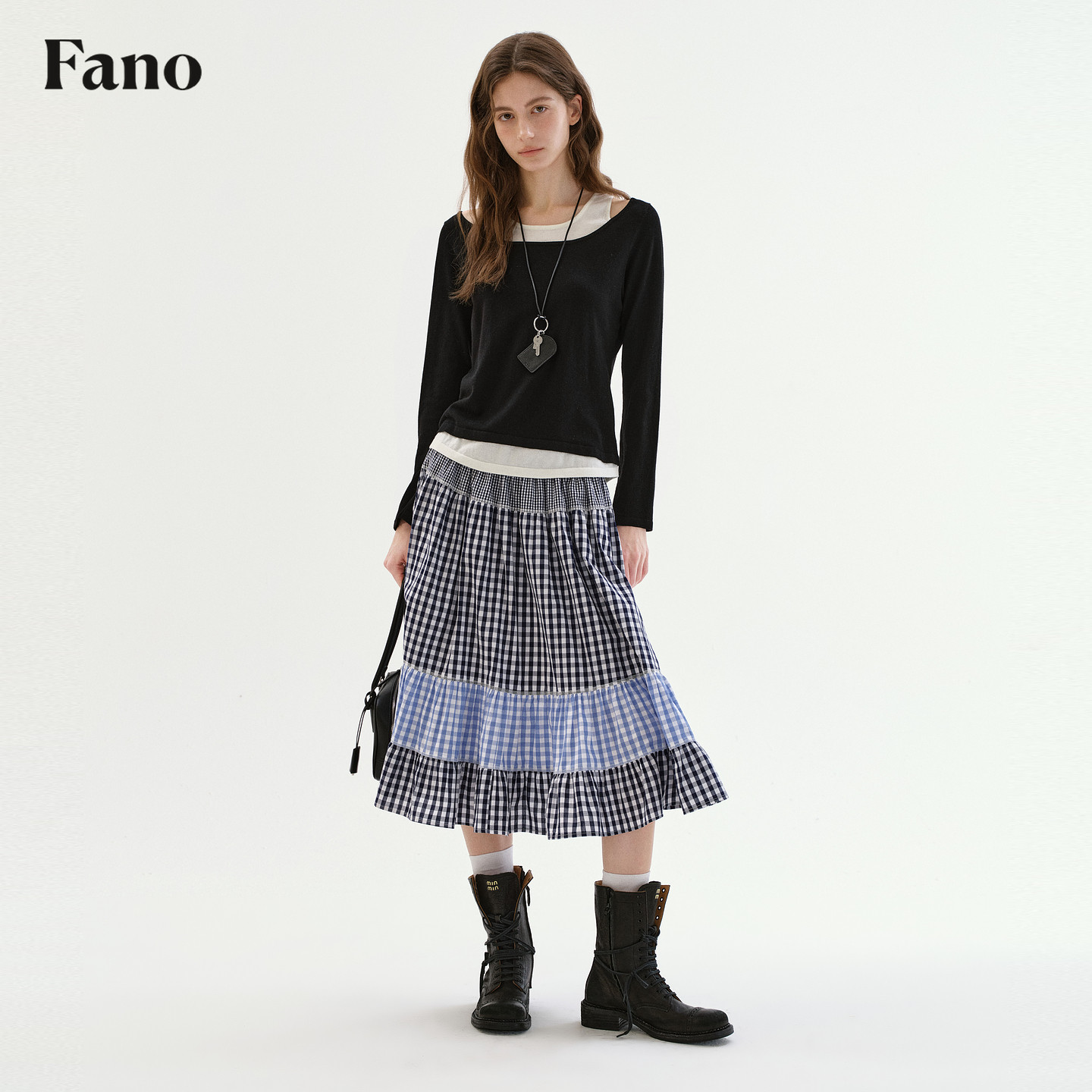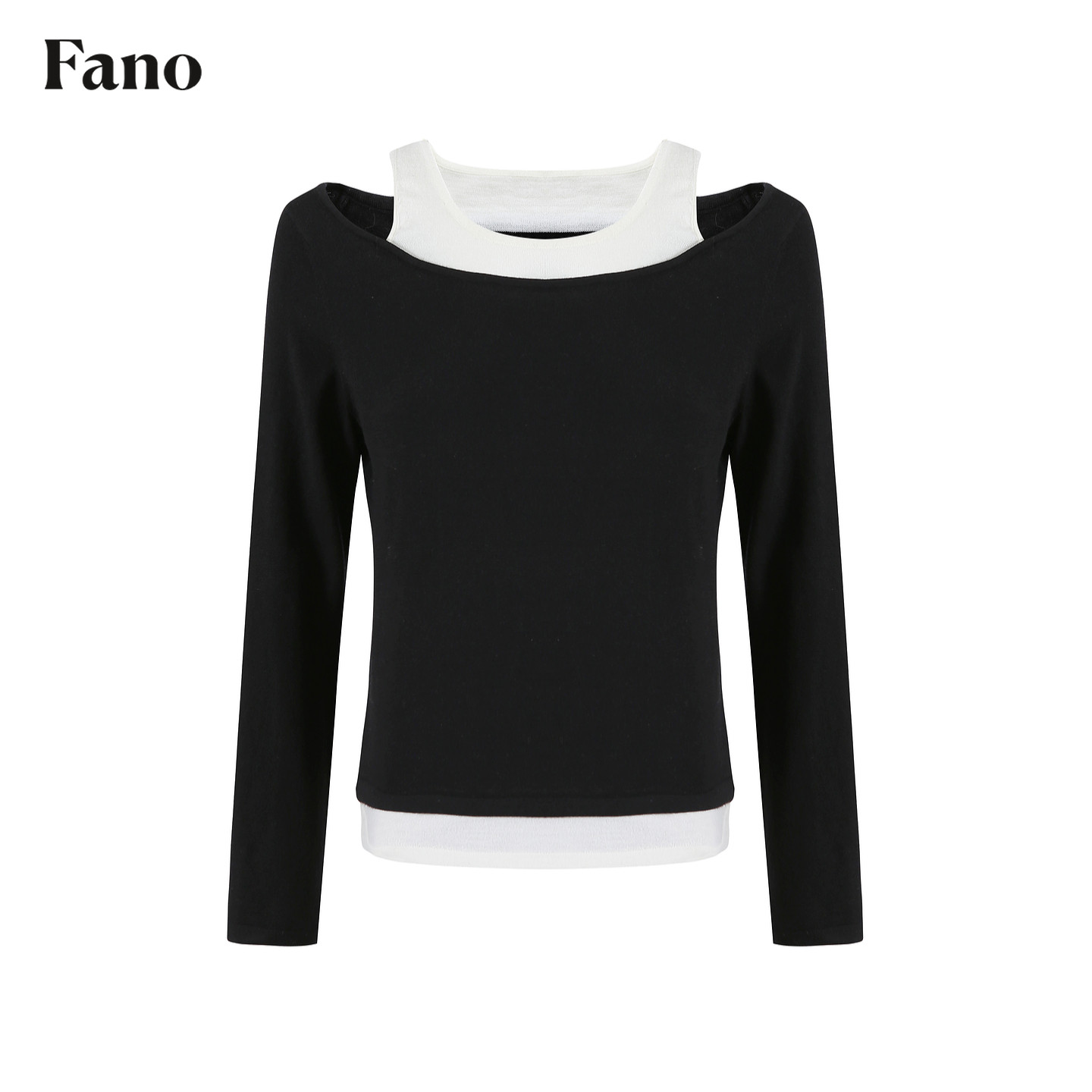 设计感镂空露肩假两件宽松上衣 T恤女春季 范洛Fano 羊毛混纺长袖
