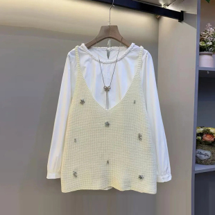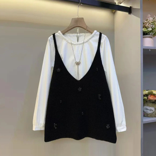 女装 圆领小衫 净版 百搭长袖 潮 吊带背心胖妹妹纯色简约韩版 加肥大码