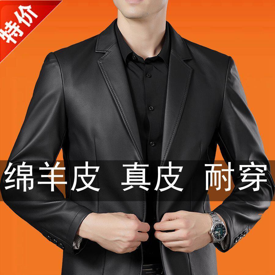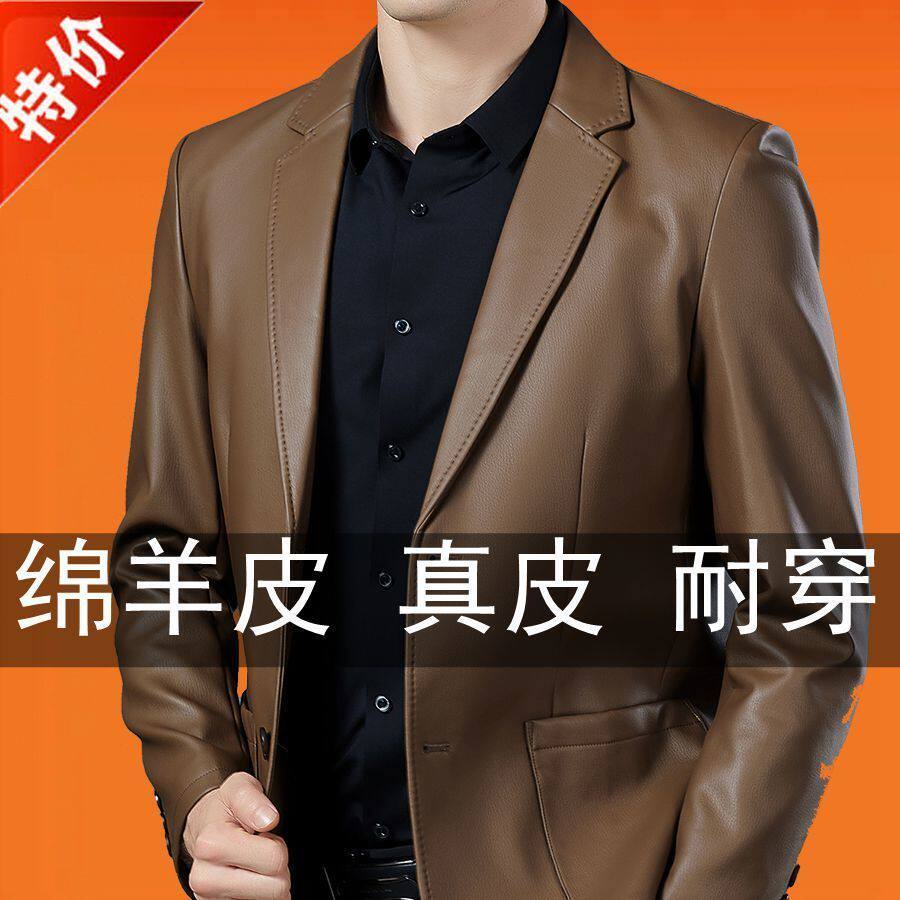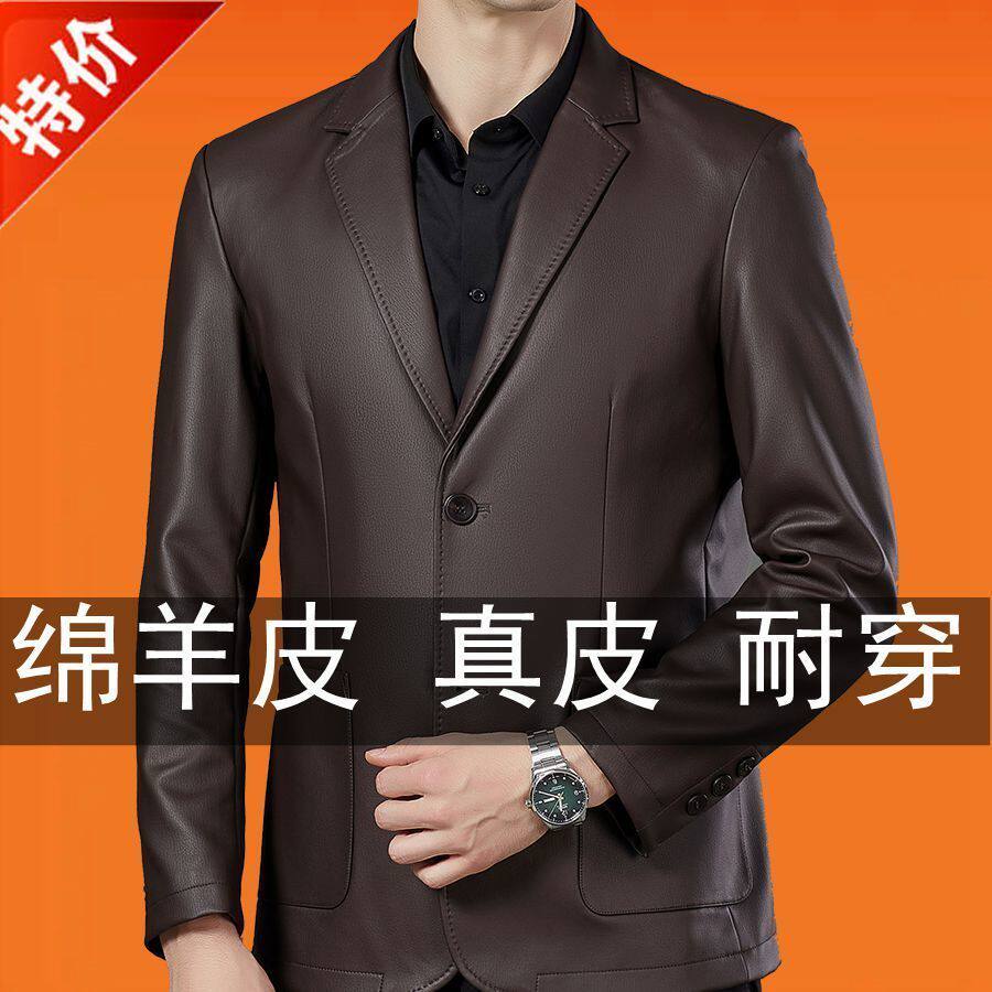 断码 海宁头层绵羊皮夹克商务休闲皮西服外套 正宗皮衣男2025春秋款