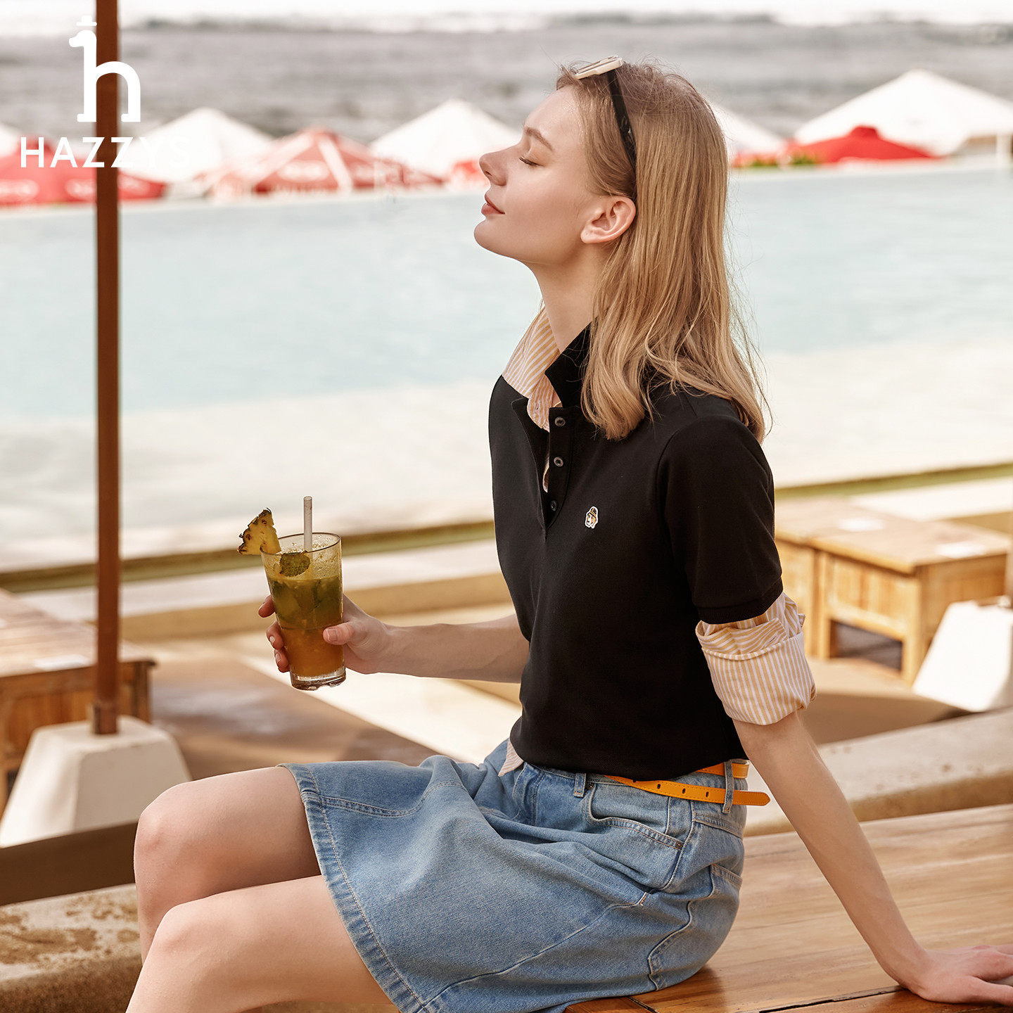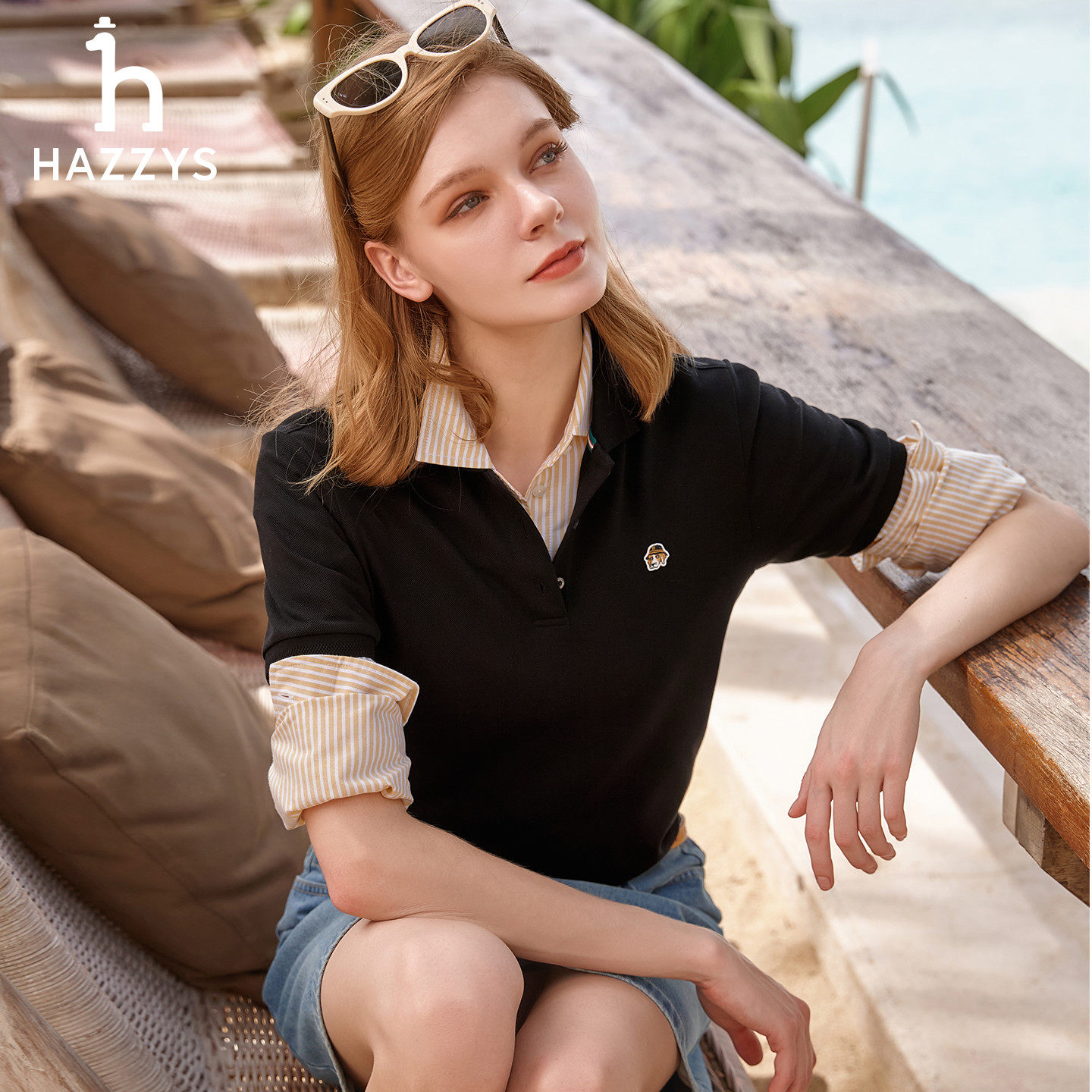 女春夏季 polo衫 Hazzys哈吉斯短袖 通勤休闲T恤上衣潮 液氨整理