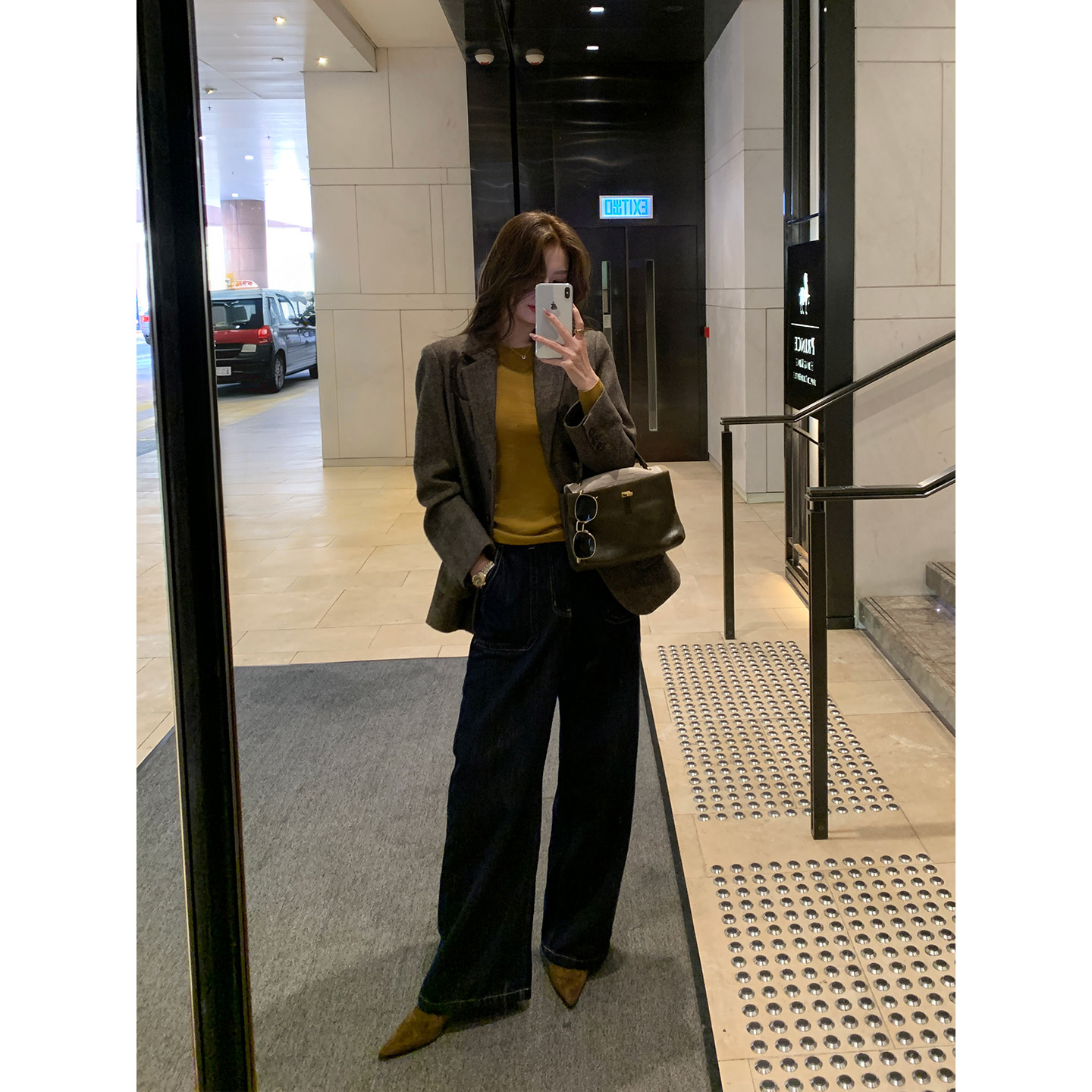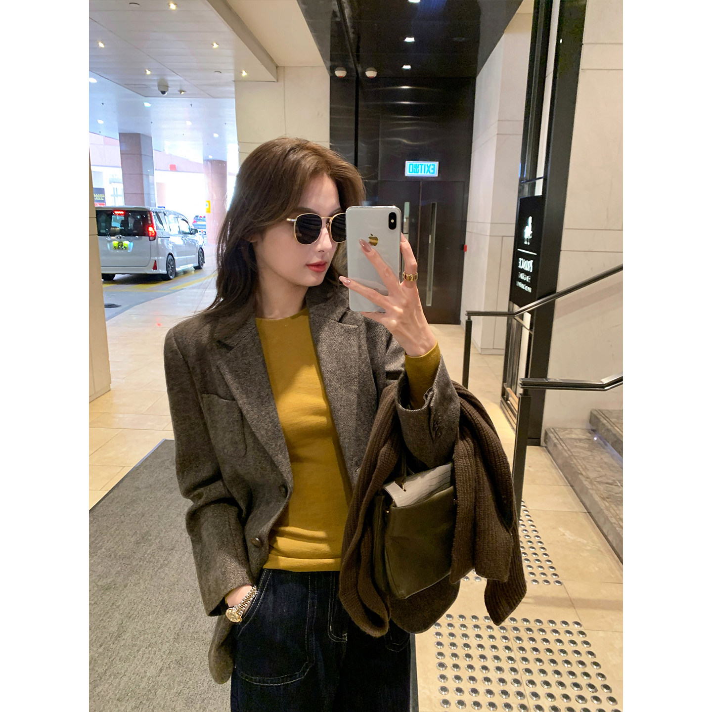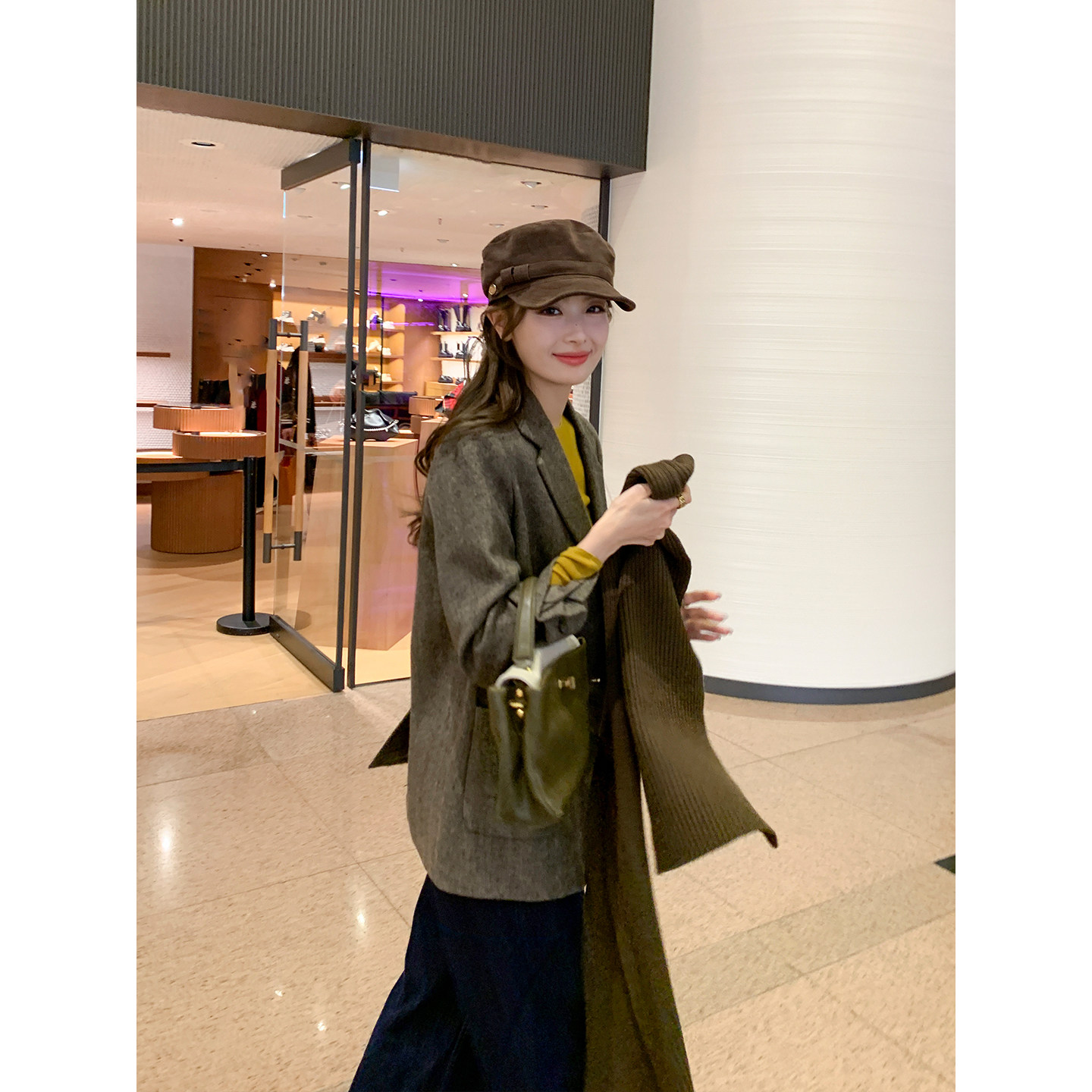 外套女人字纹翻领毛呢西服 高级感羊毛呢子西装 Maven Lin都市魅力