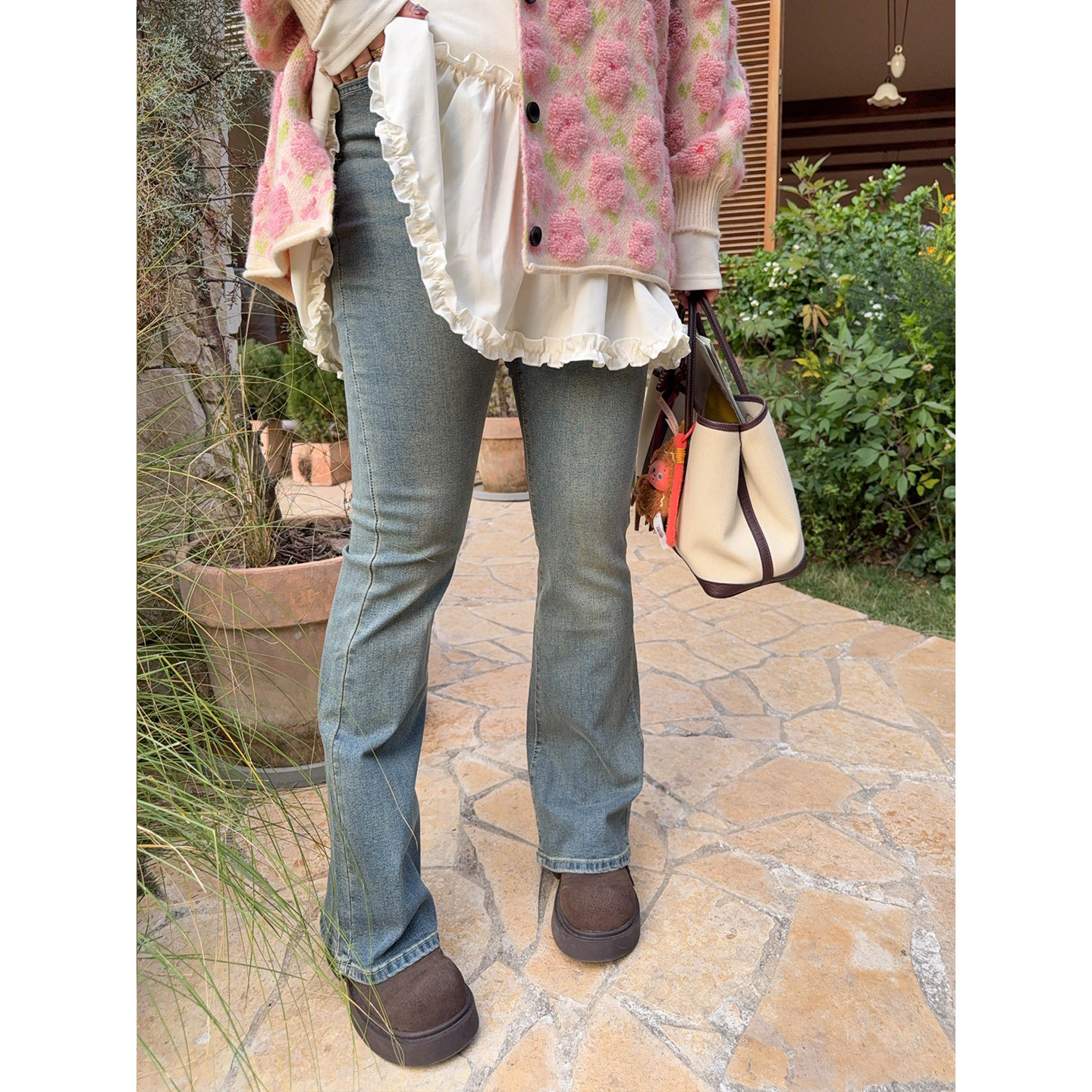 双版 VOGANA戛纳家大码 弹力棉合身微喇裤 建模腿封神牛仔裤 本 女装