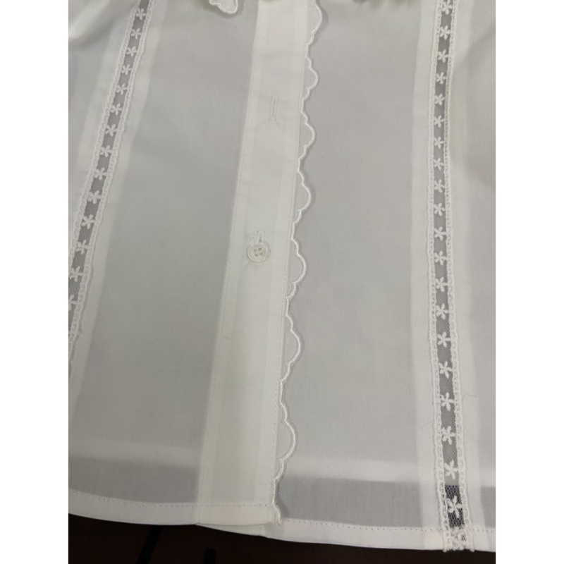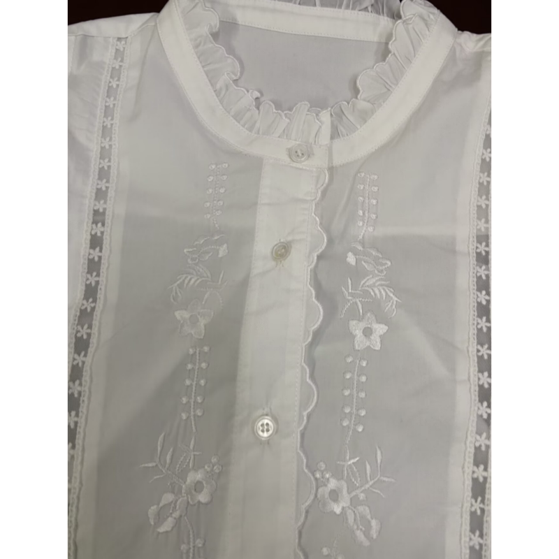 女 韩系木耳边立领拼接花朵刺绣镂空气质衬衫 1.17 onetwo15317春款