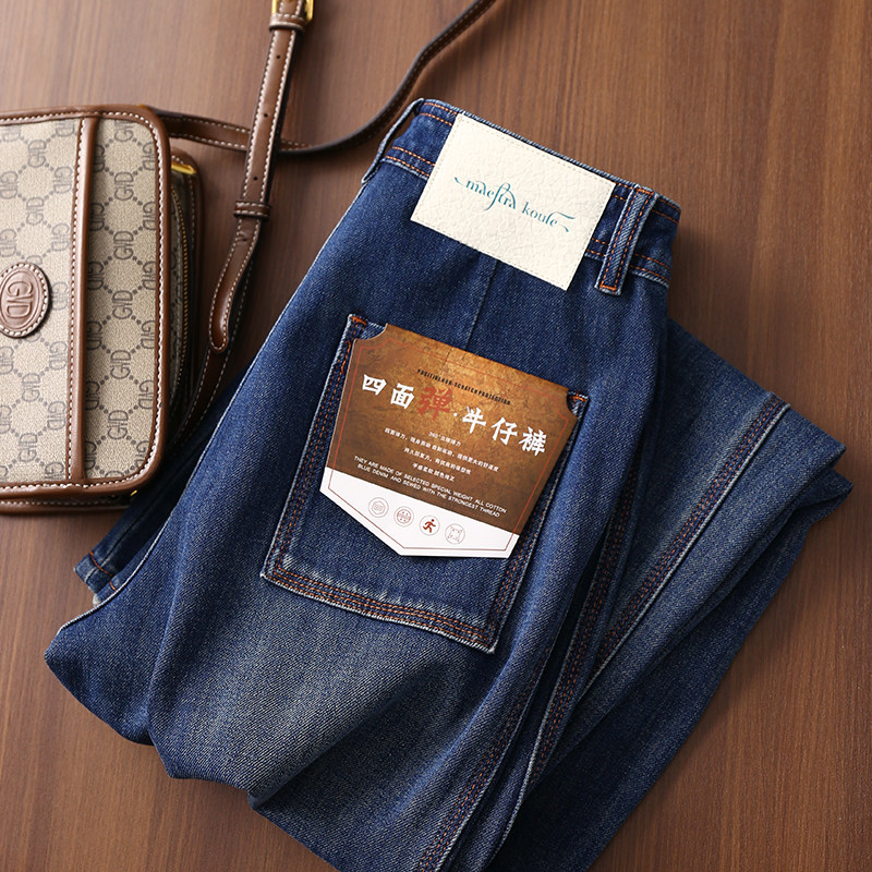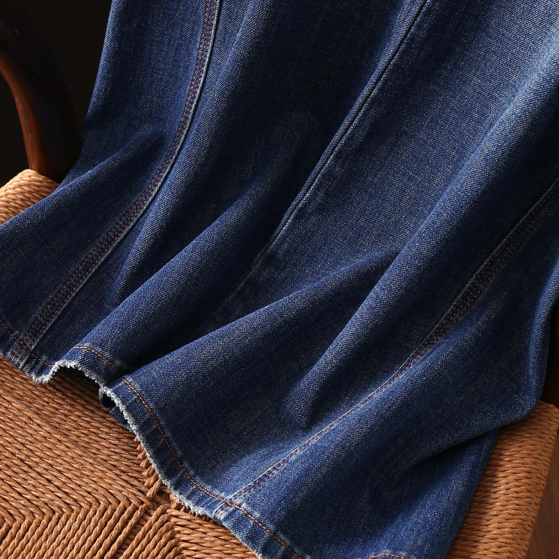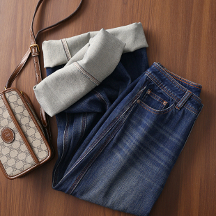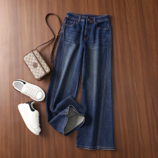 腰头明线边高腰显瘦阔腿微喇牛仔裤 淘么淘 chic Easy 女春 法式