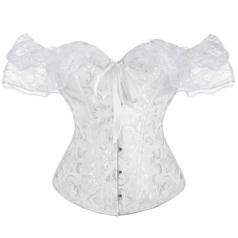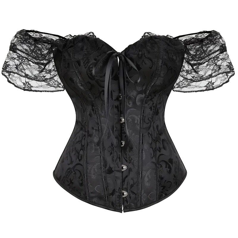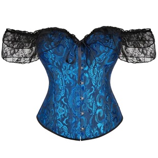 有大码 聚拢托胸骨衣 复古蕾丝花边鱼骨塑身衣一字肩带泡泡袖 新款